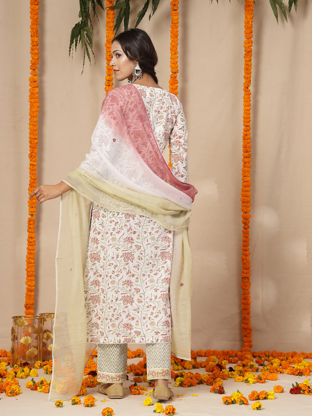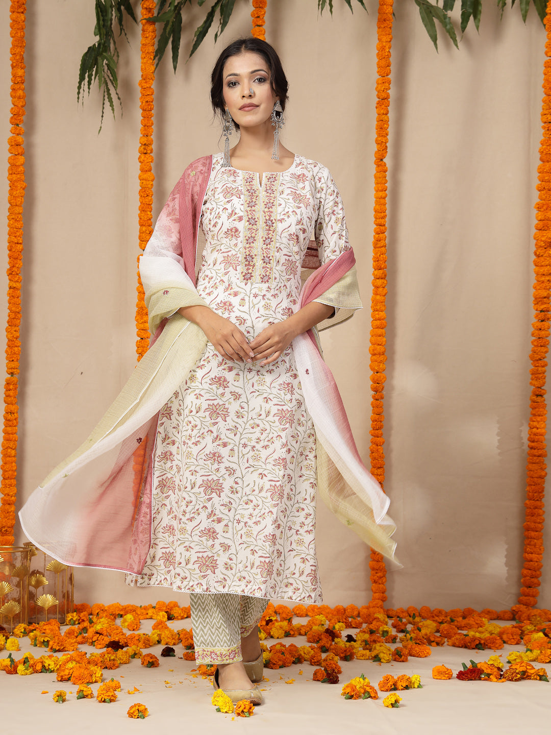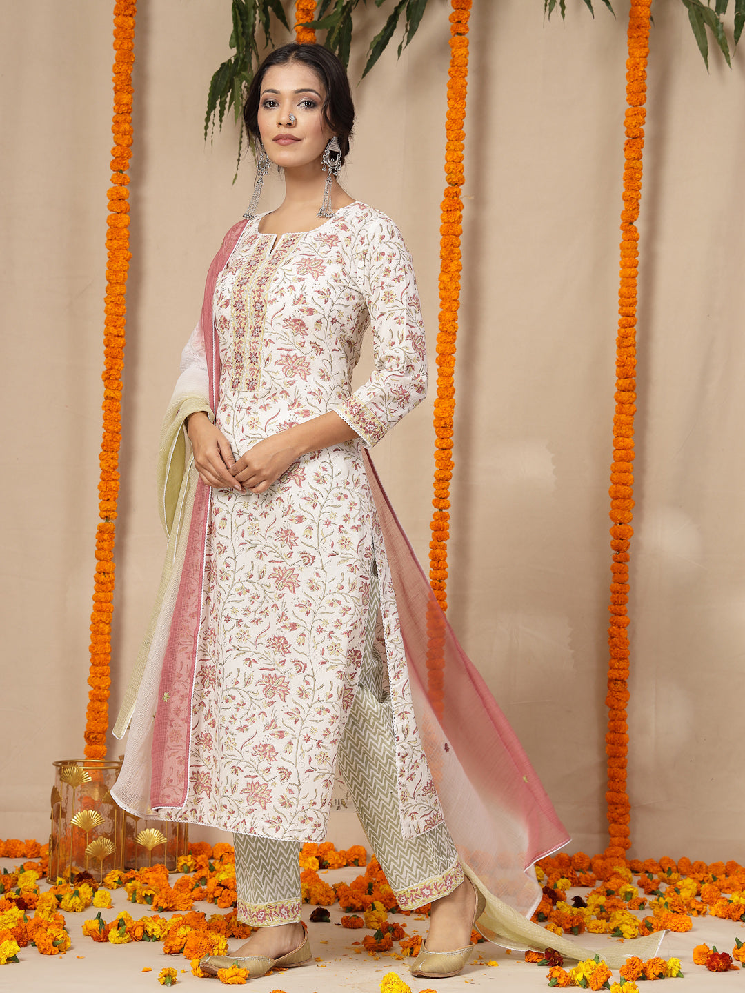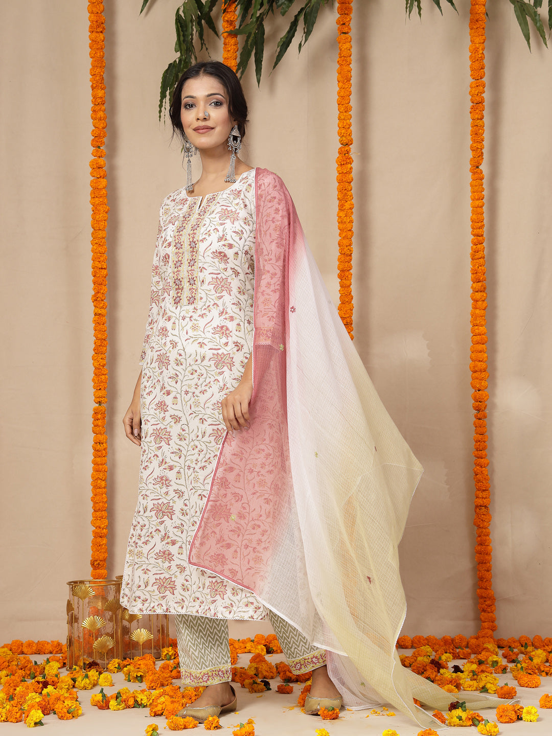 •Women kurta pants with kota doria dupatta