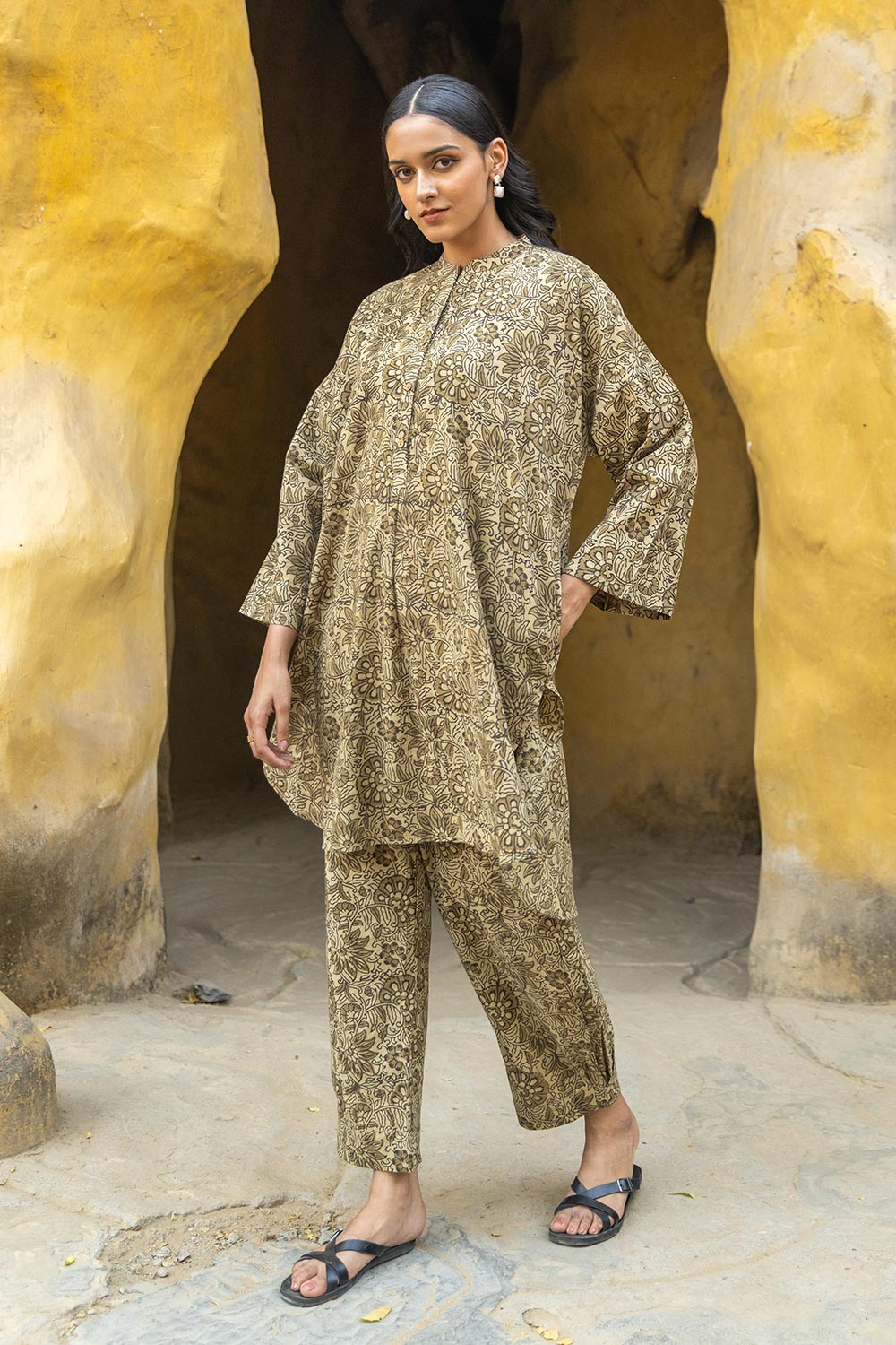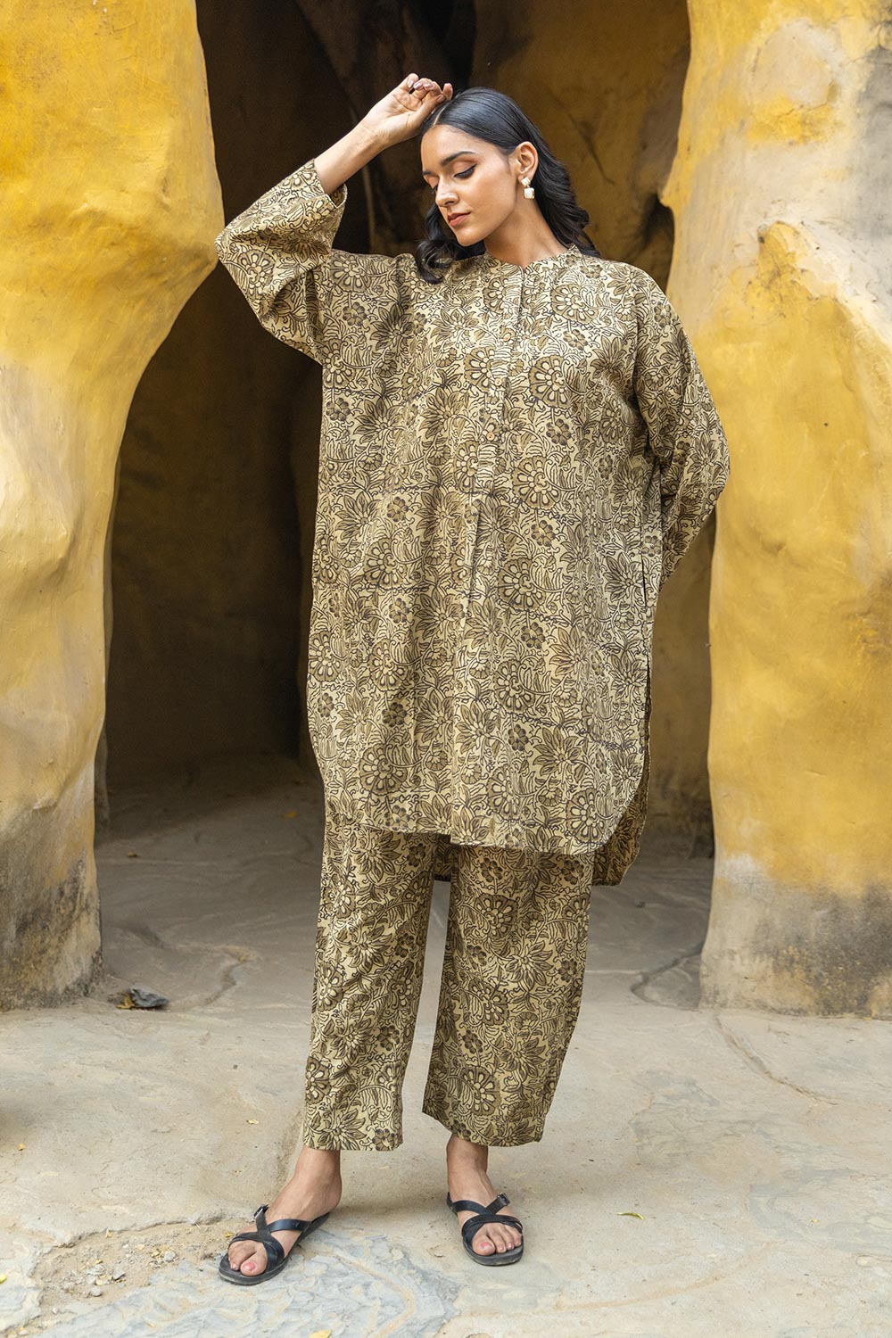 Minimalist oversized style Co-ord Set – Akola Natural Print on Loose Fit Cotton