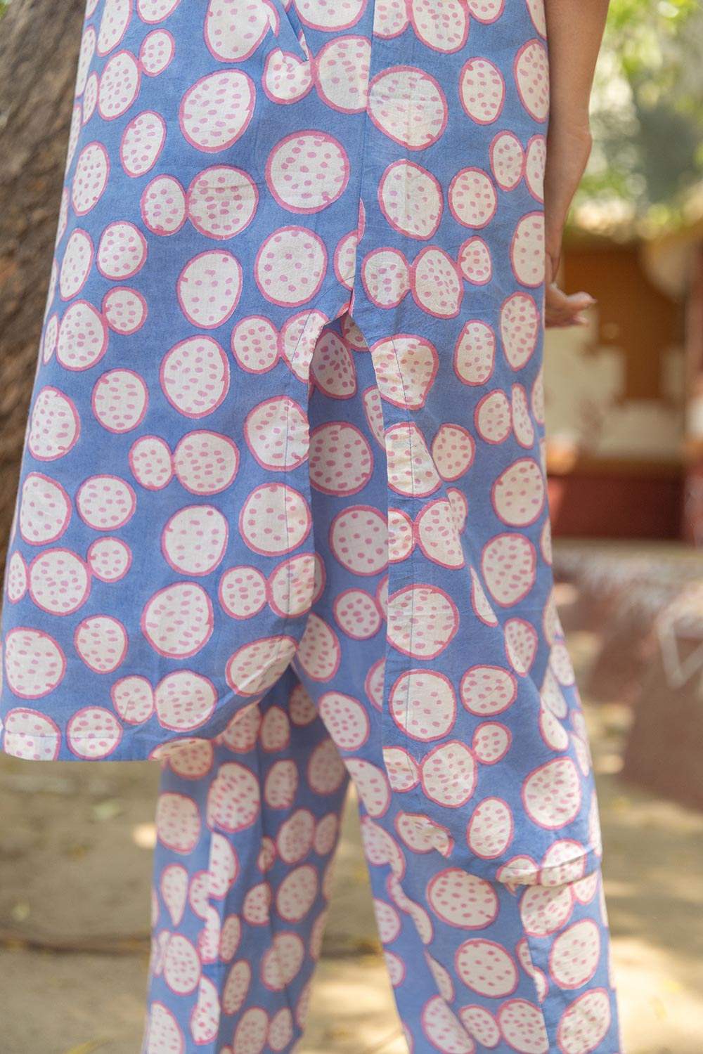 Add a touch of tradition to your everyday style with our Blue and Pink Hand-Blocked Dobby Print Co-ord Set. Crafted in breathable, soft cotton with a subtle dobby weave, this
