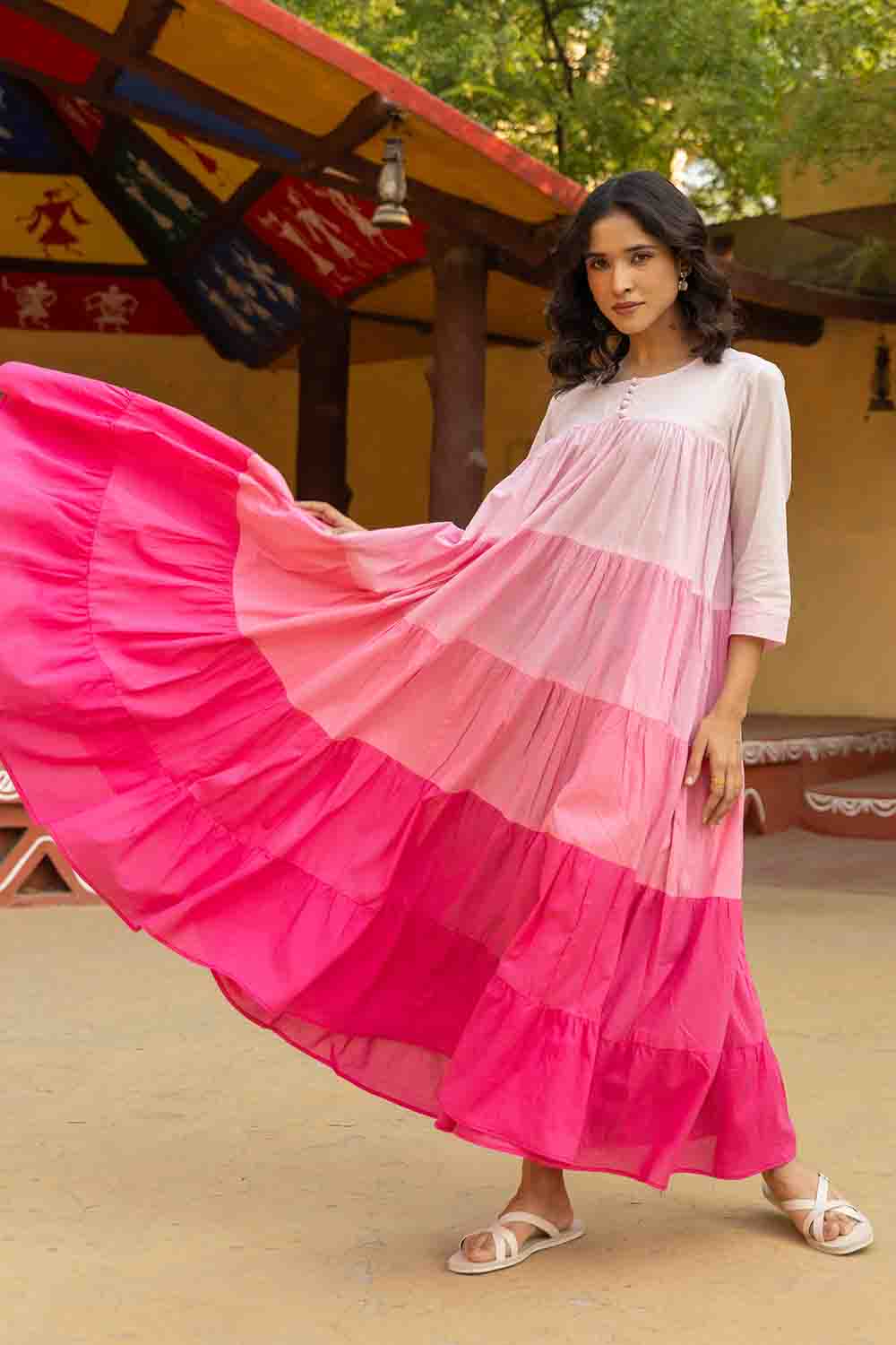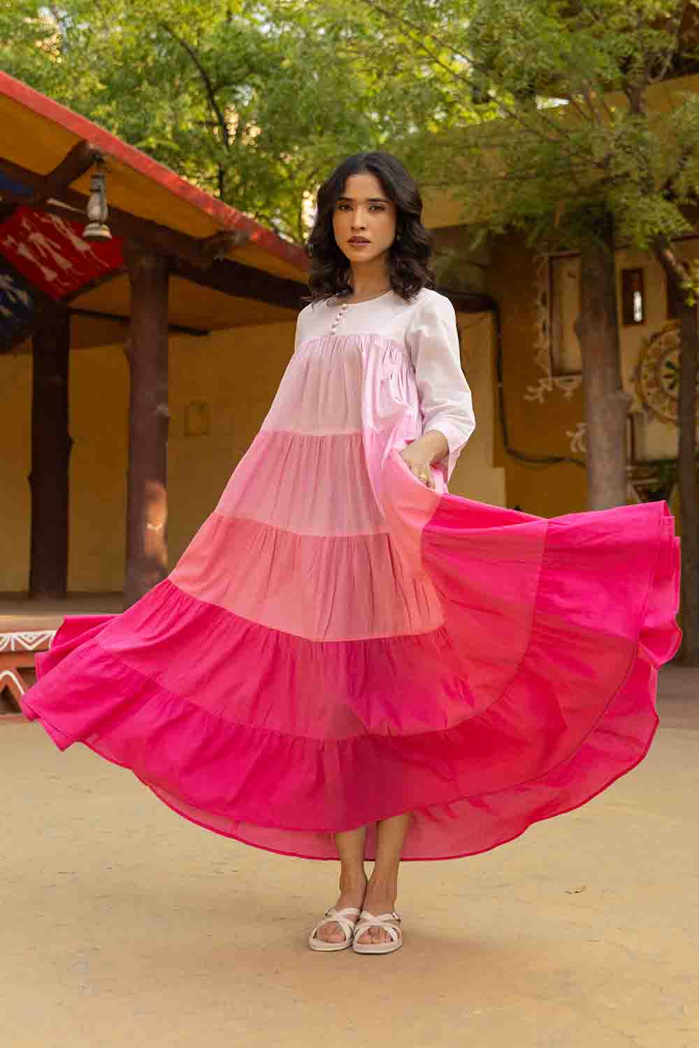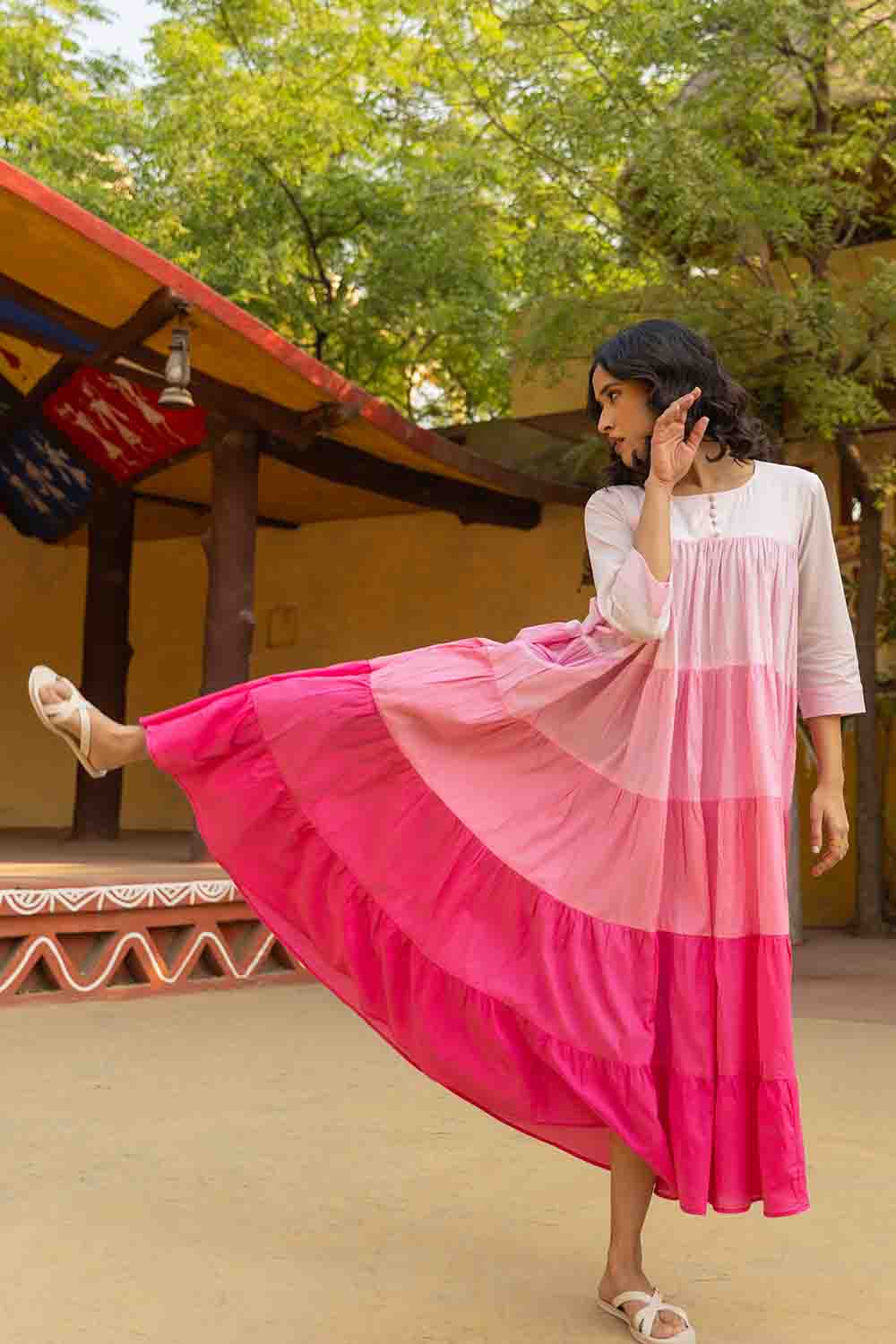 Make A Bold Statement This Summer With Our Blush To Magenta Gradient  Dress. Lightweight, Artisan-Dyed, And Perfect For Day-To-Night Styling.