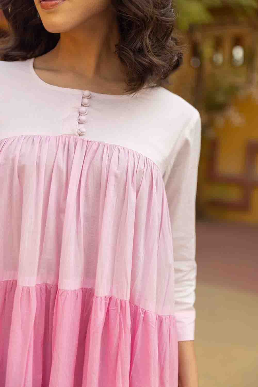 Pink To Magenta Gradient Dyed Organic Cotton Dress - Summer - Ready Statement