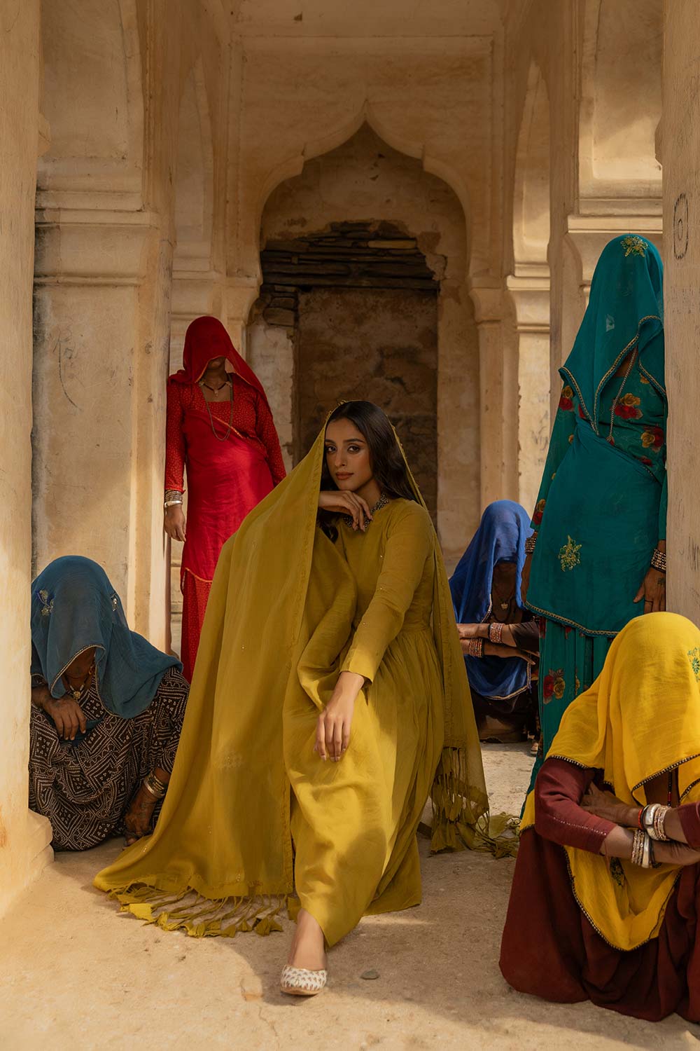 MUSTARD MALMAL MIRROR WORK DUPATTA