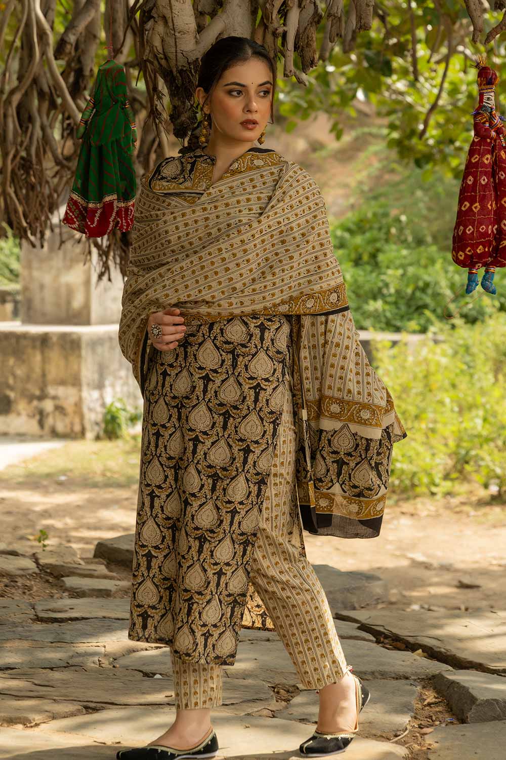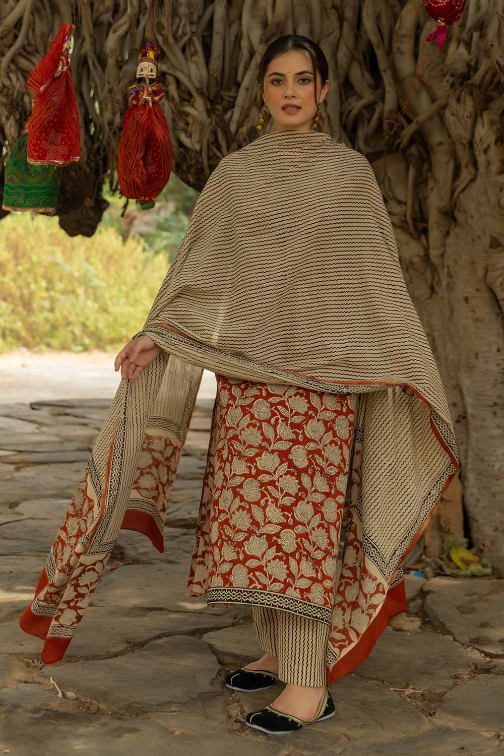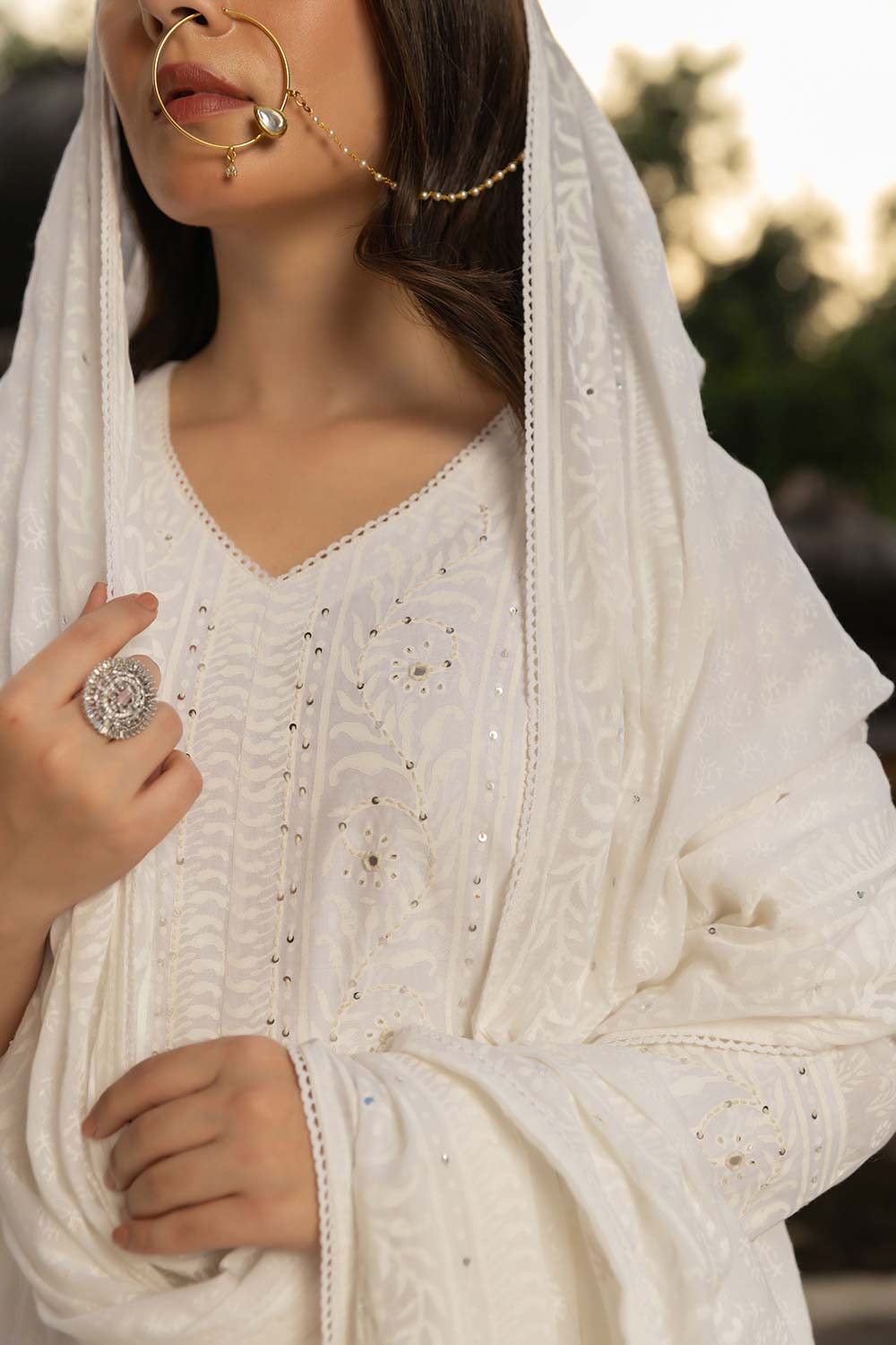 WHITE KOTA DORIA HAND BLOCK PRINT DUPATTA