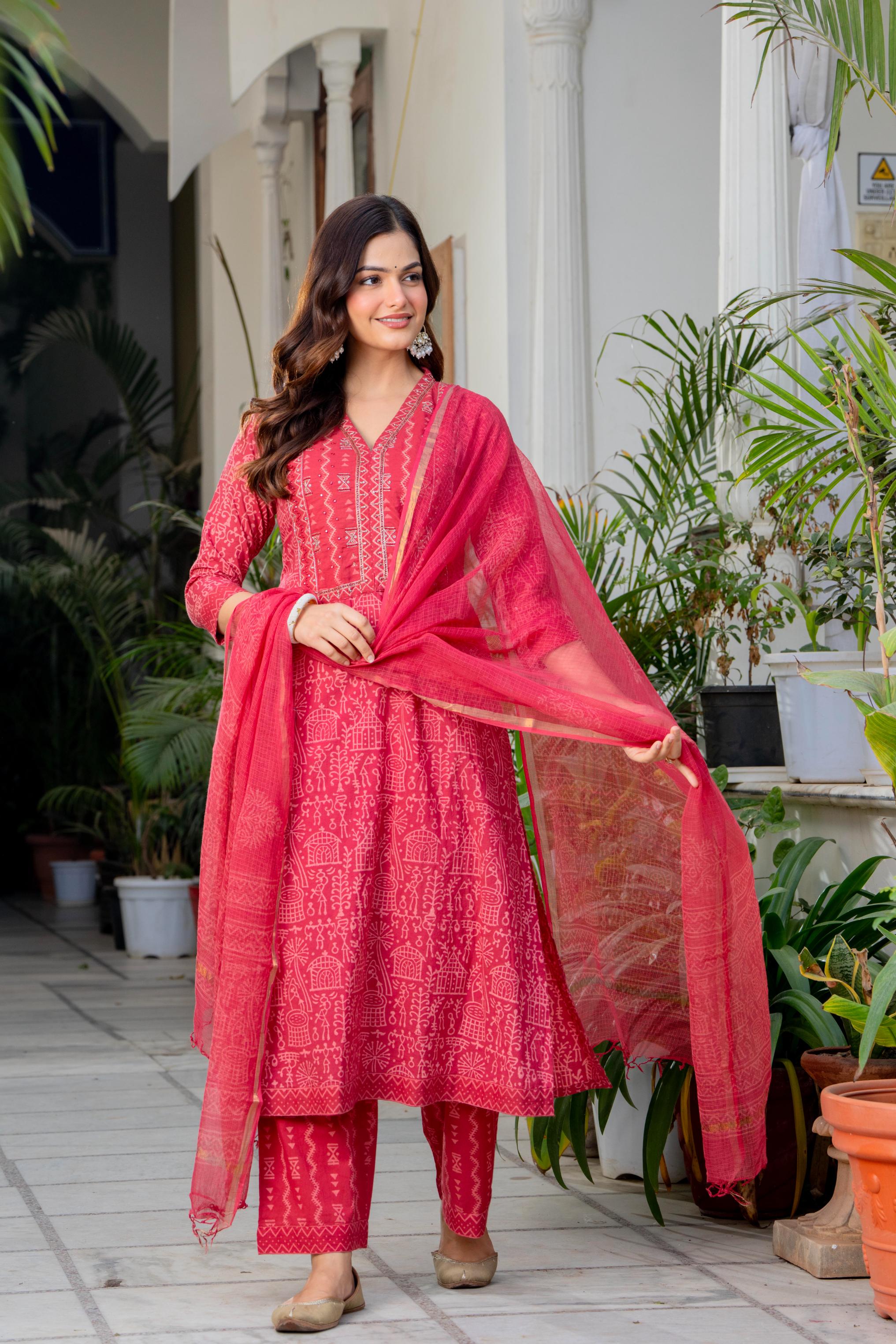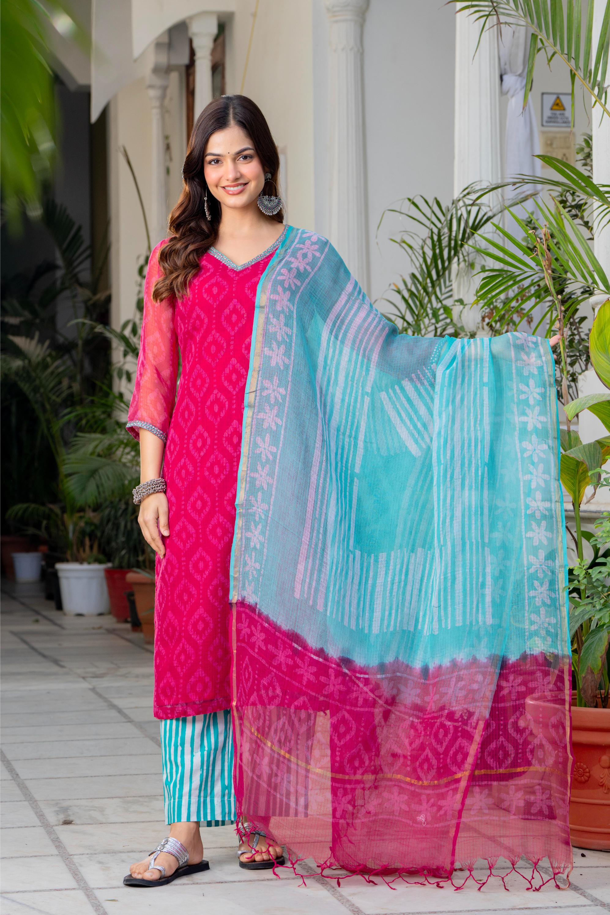 MAGENTA CHANDERI PITTA WORK DUPATTA