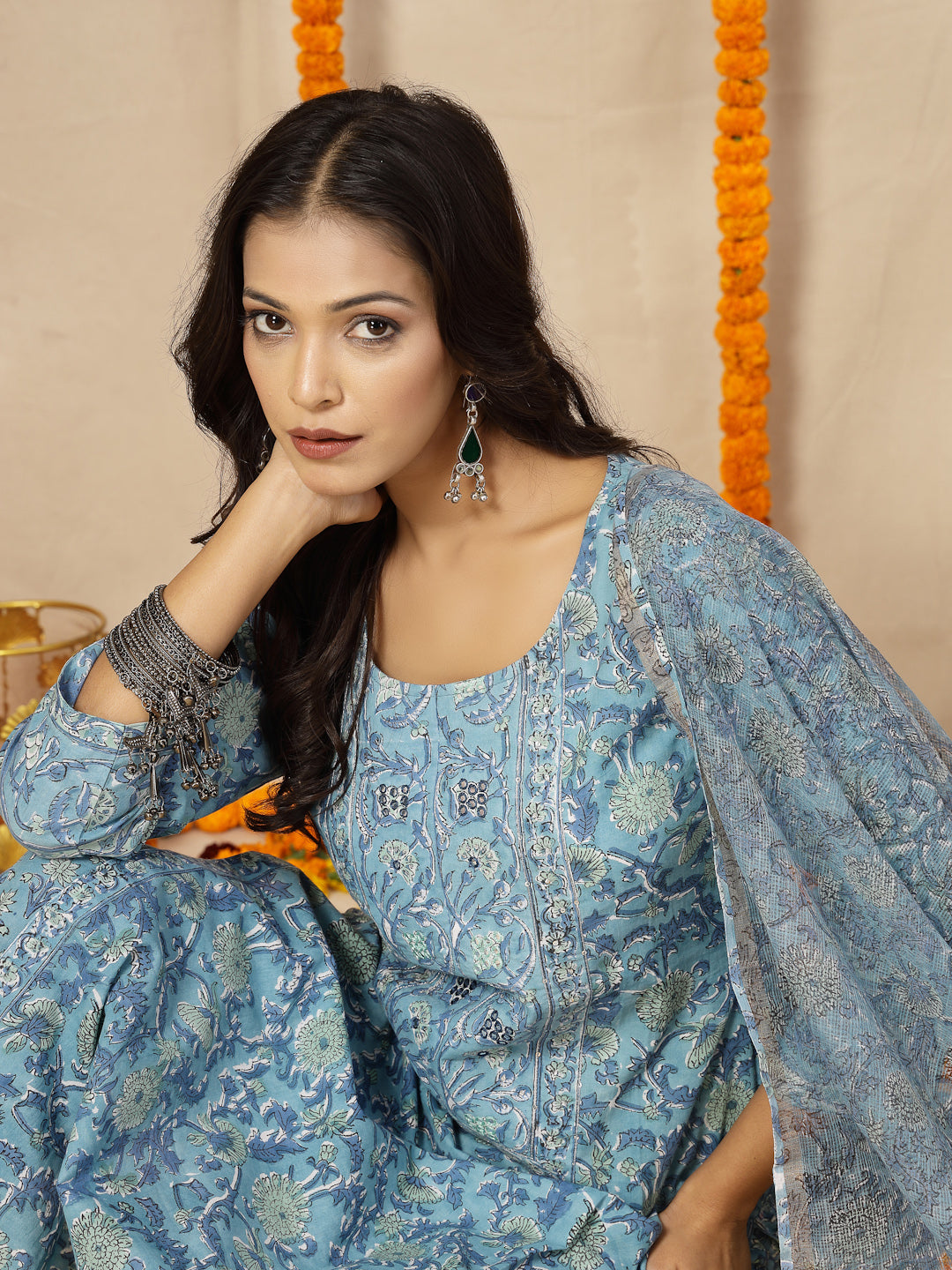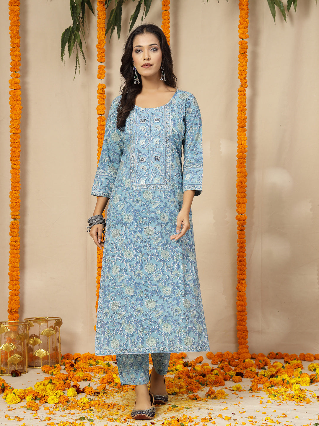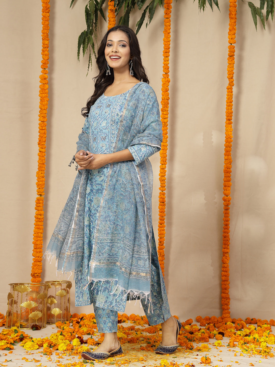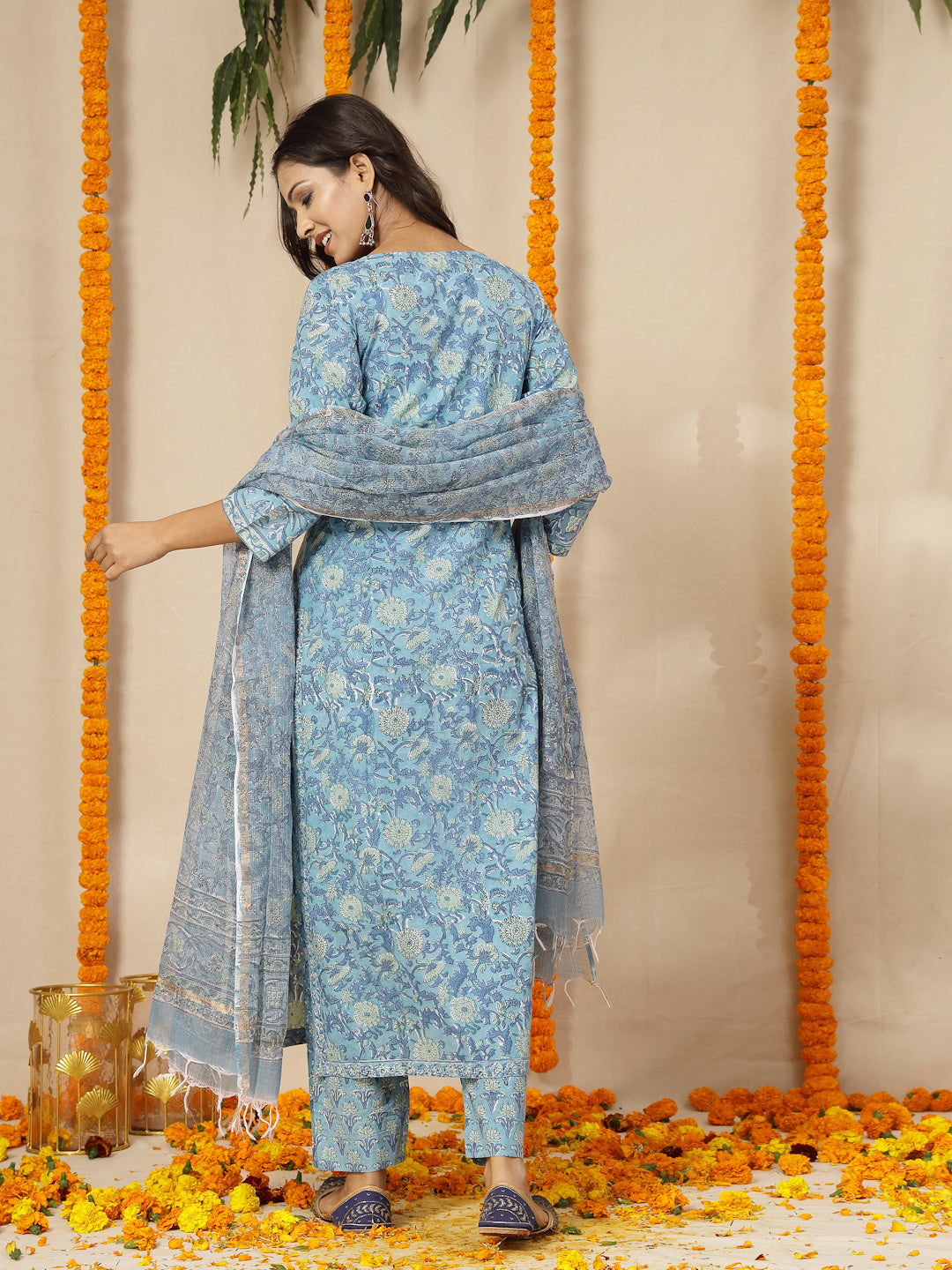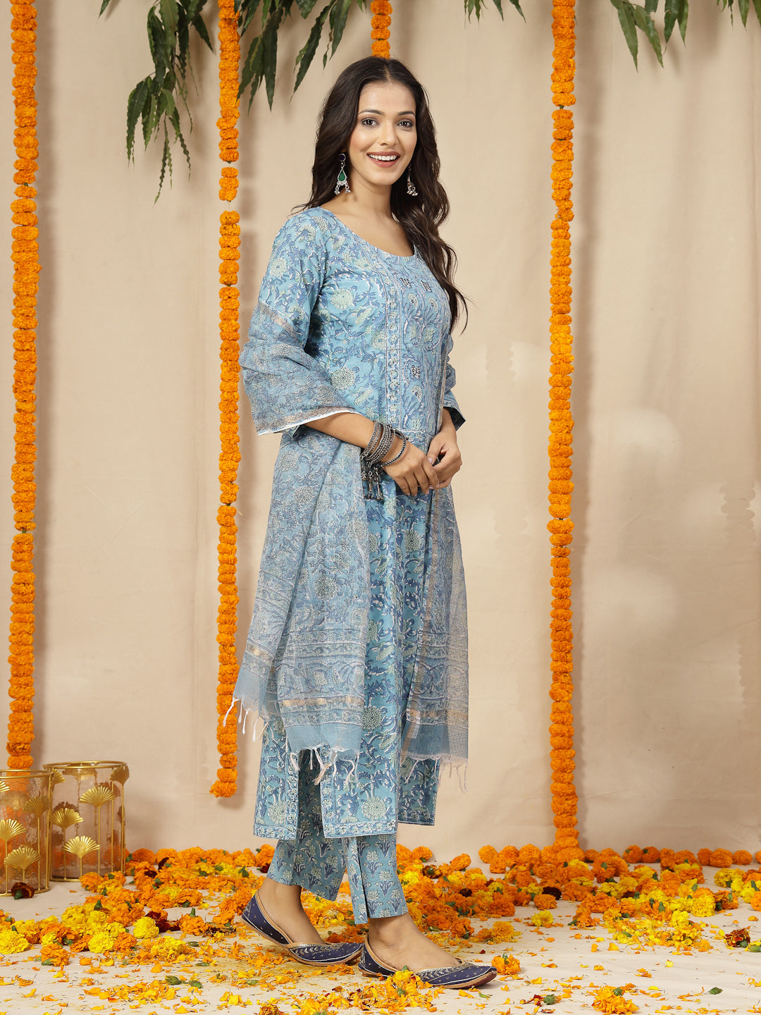 • Blue Women Block Print Suit Set