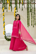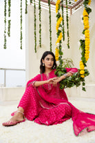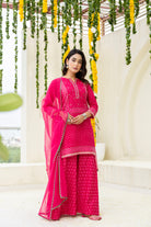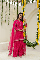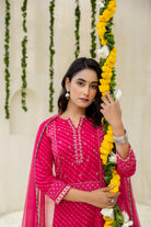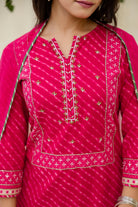 Hot Pink Festive Cotton Leheriya Kurta Set | Short Length & Flared Pants | Detailed Handwork