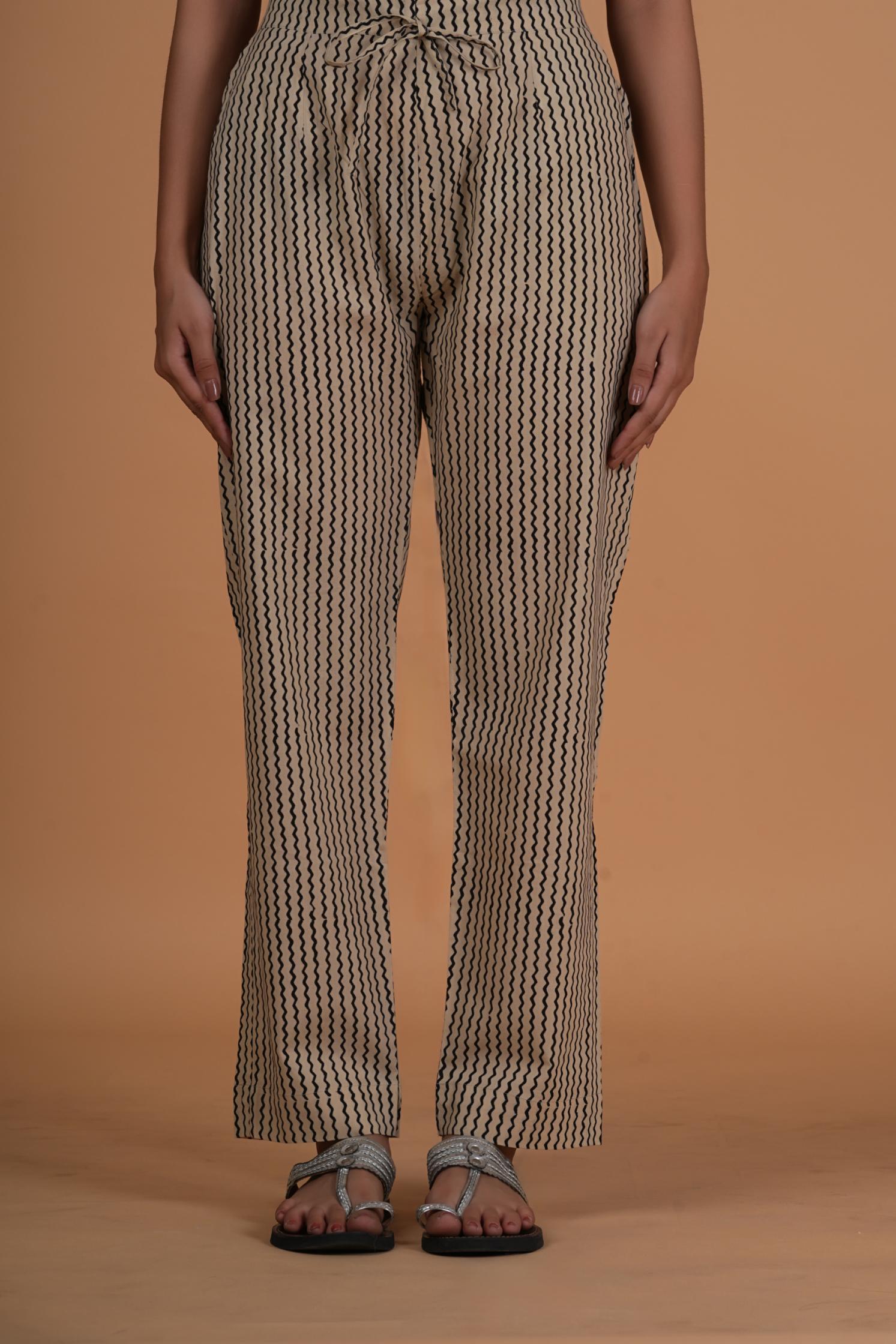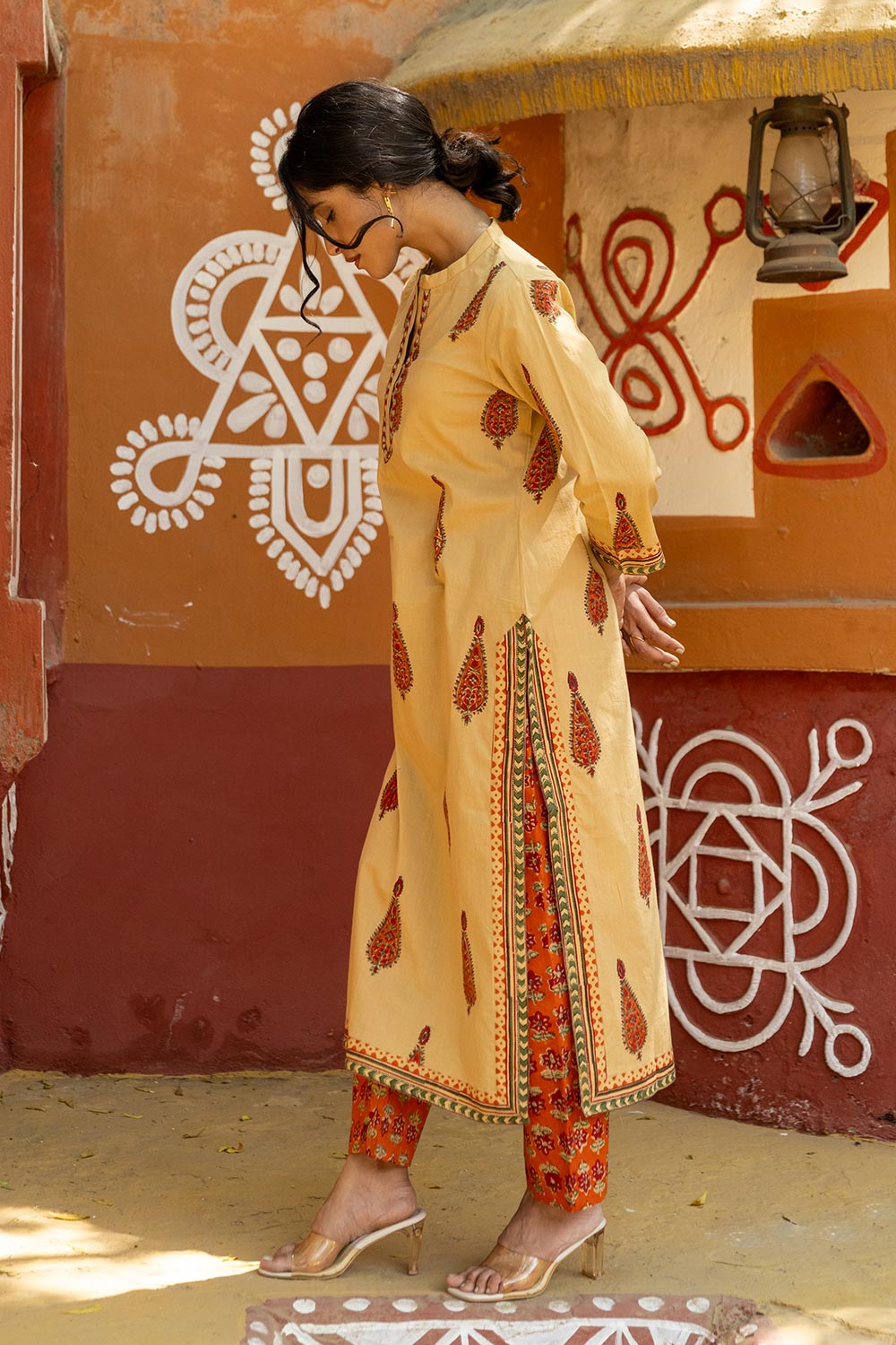 Pastle Pink Chanderi Block Printa Line Kurta With Pants - Set Of 2