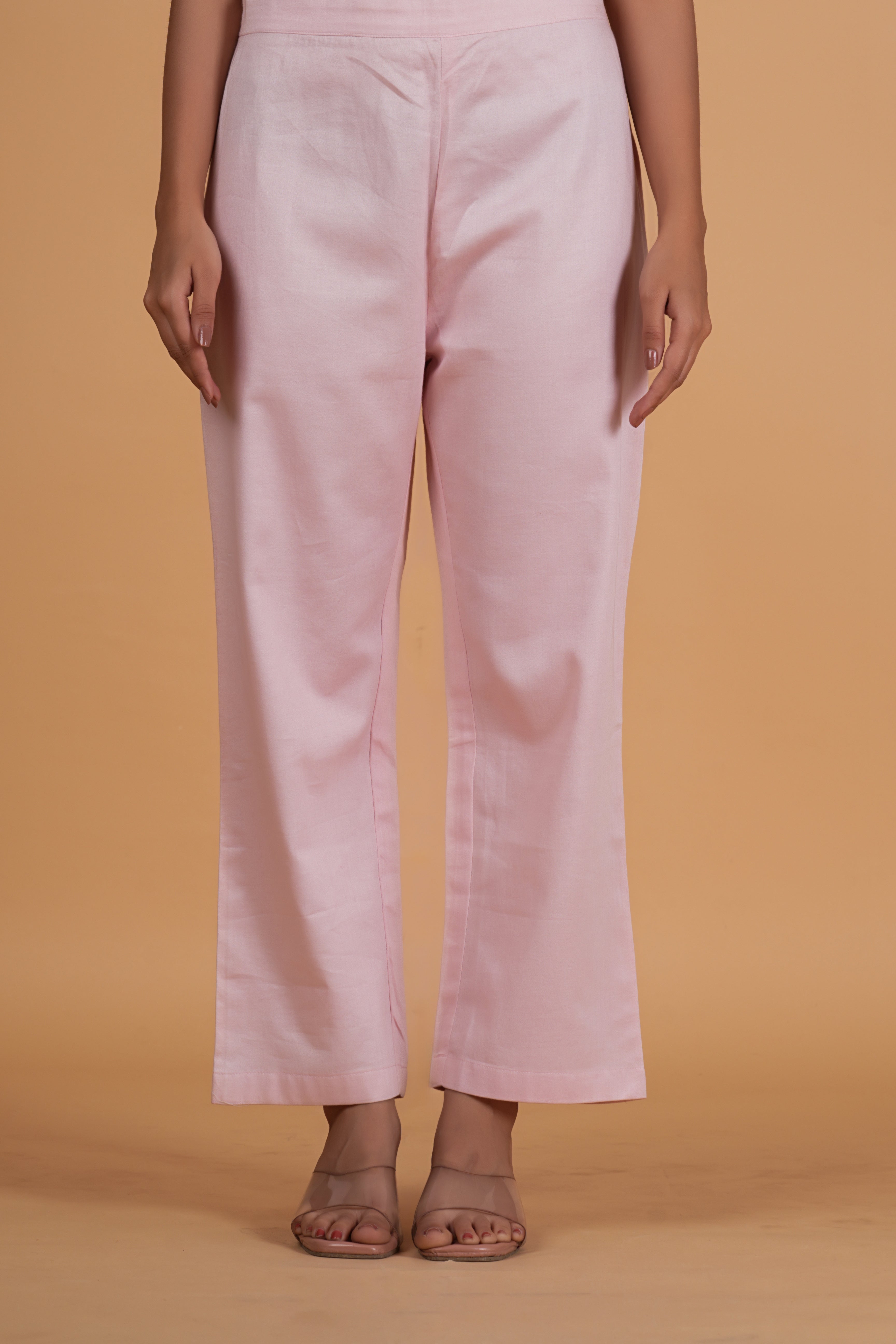 Cotton Straight Rani Pink Pants with Gota Lace Detail