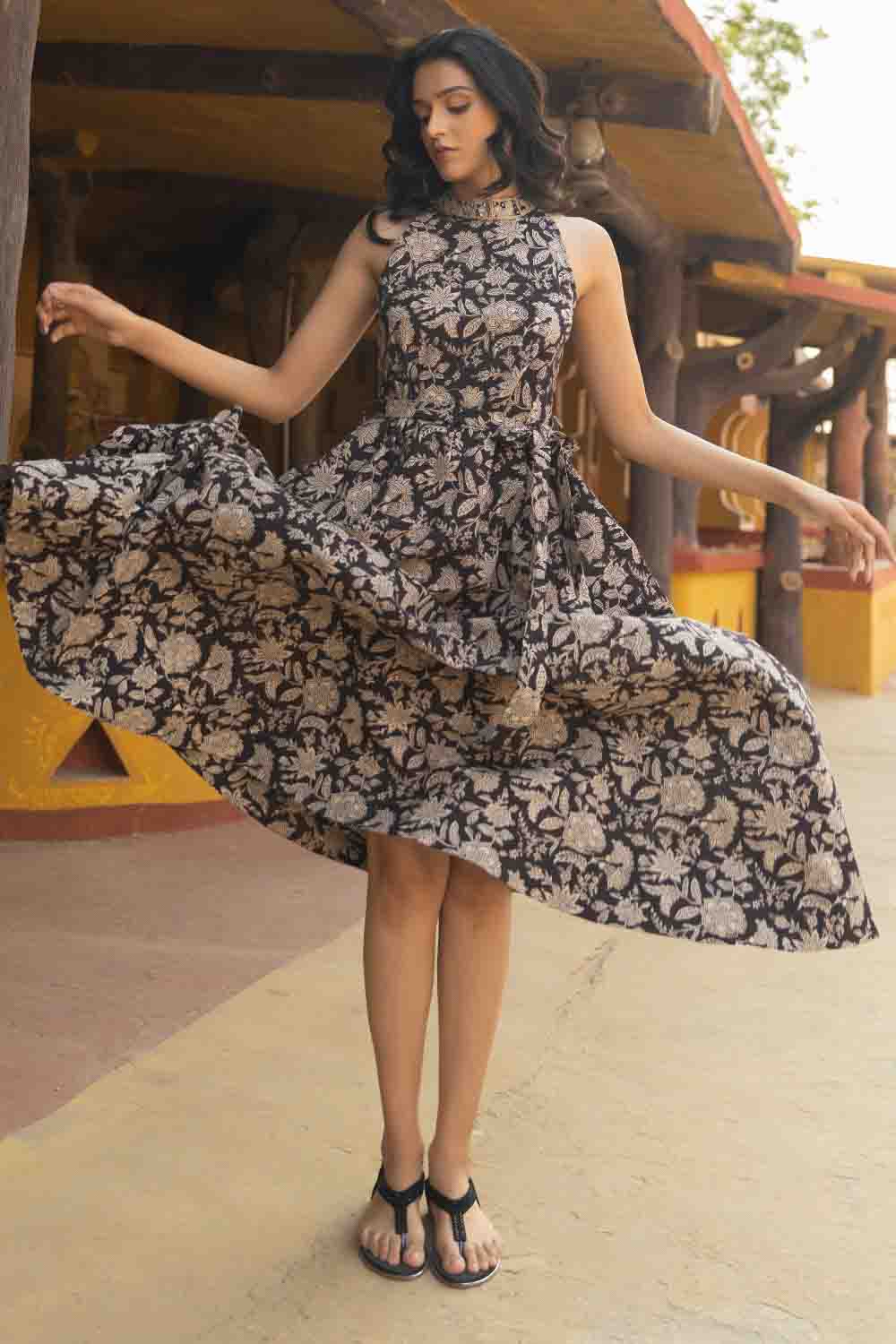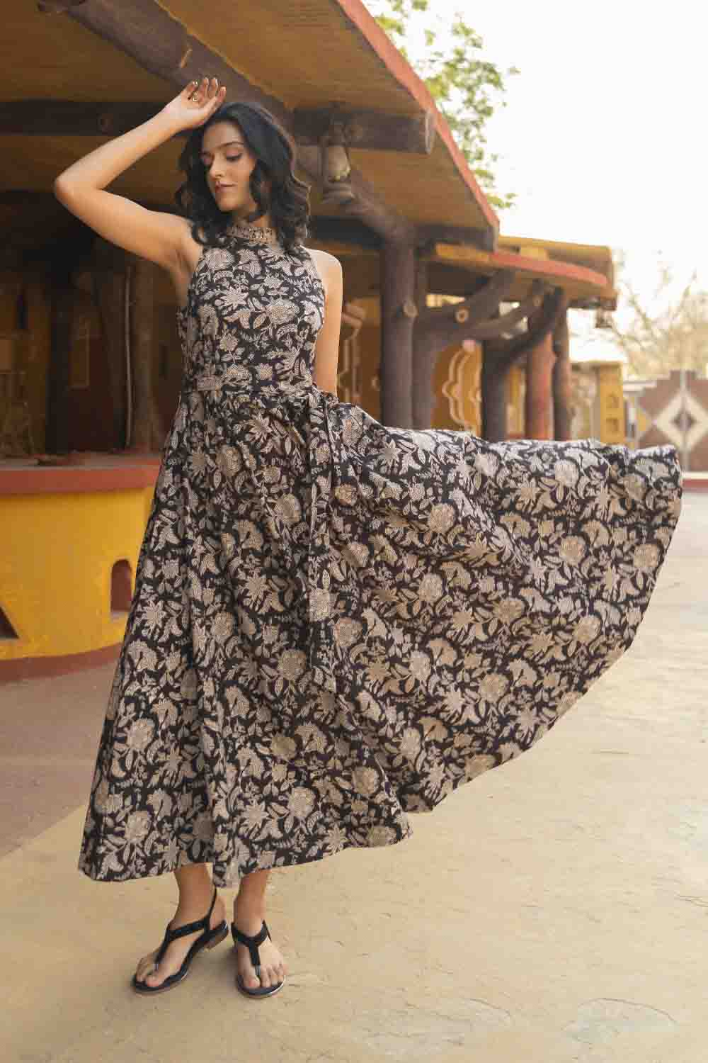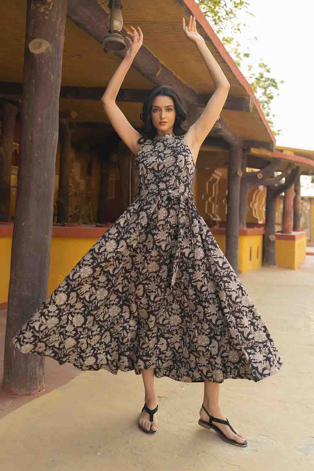 Black Handblock Printed Cotton Dress – Timeless Artisan Wear