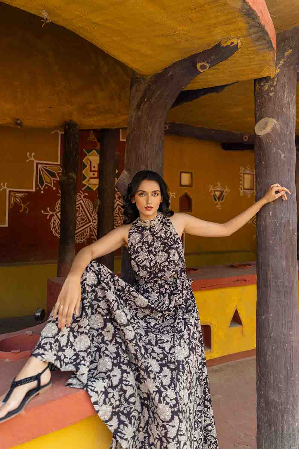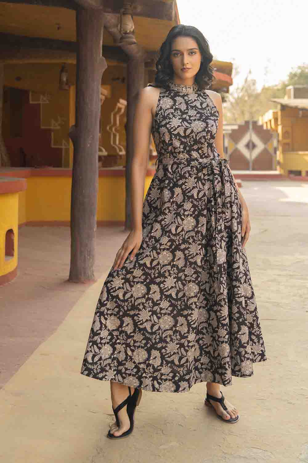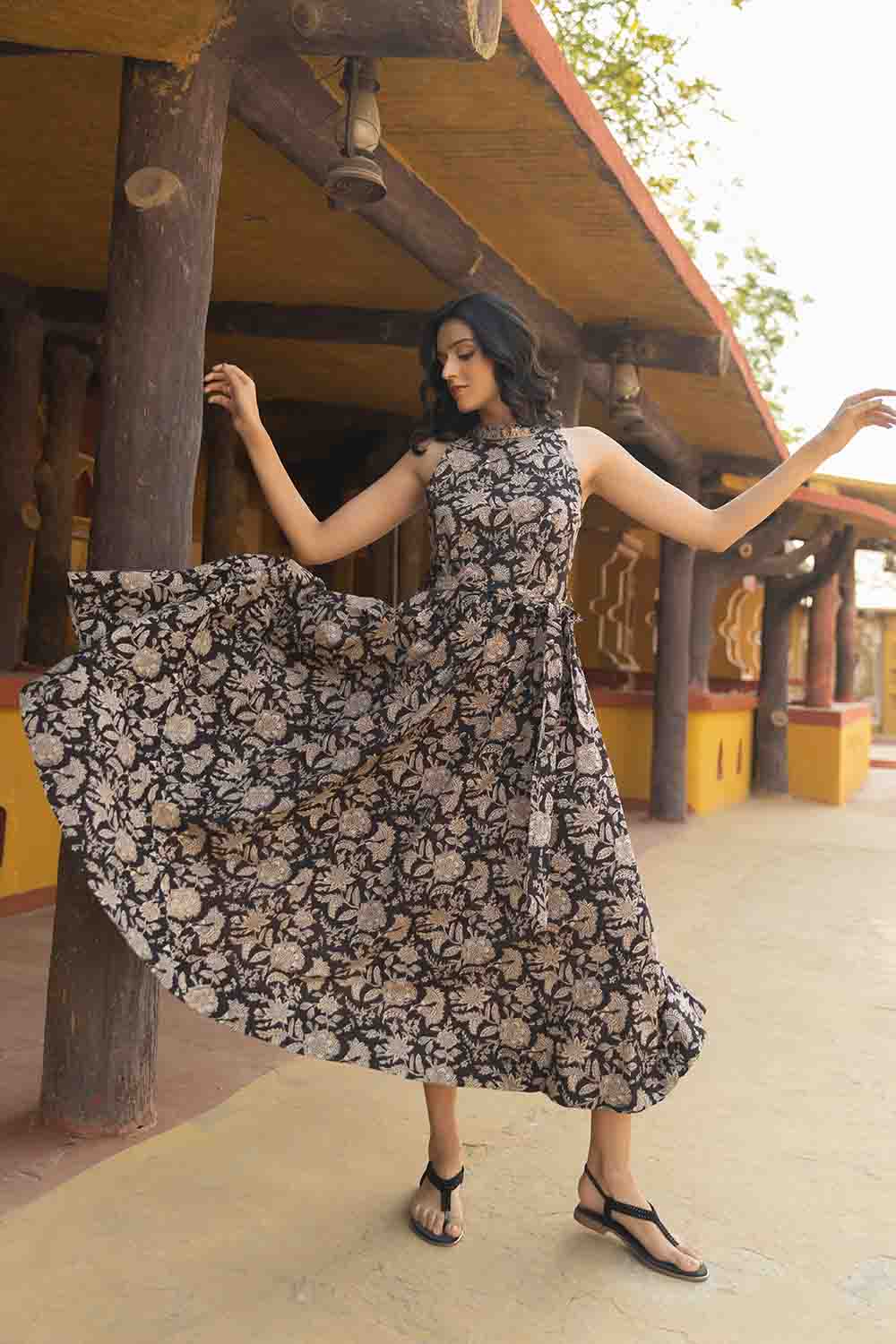 Black Handblock Printed Cotton Dress – Timeless Artisan Wear