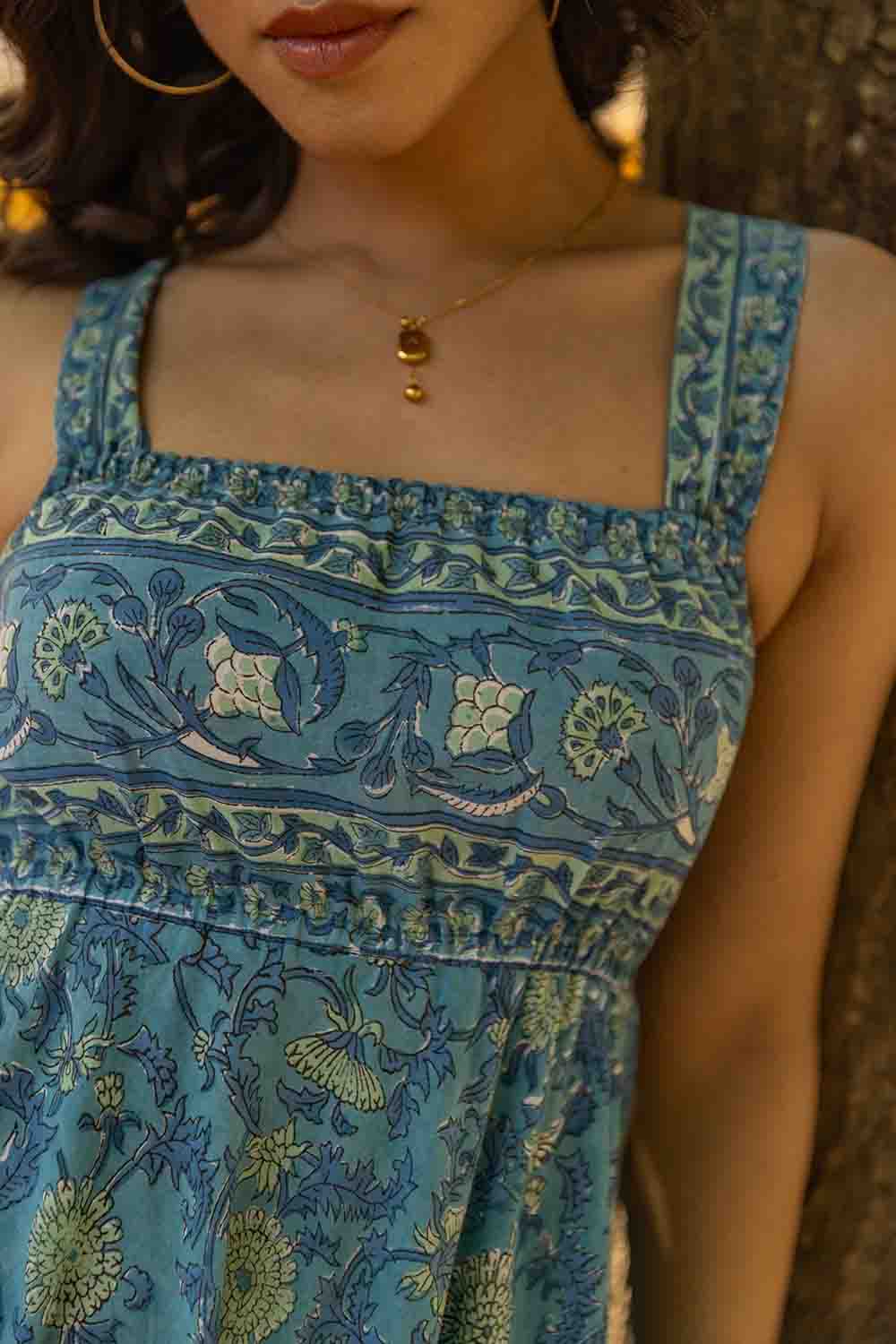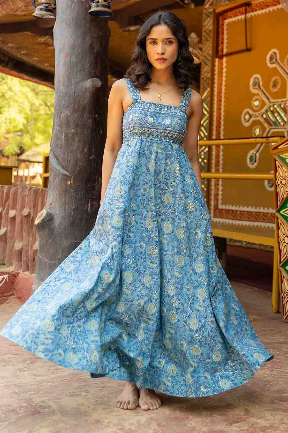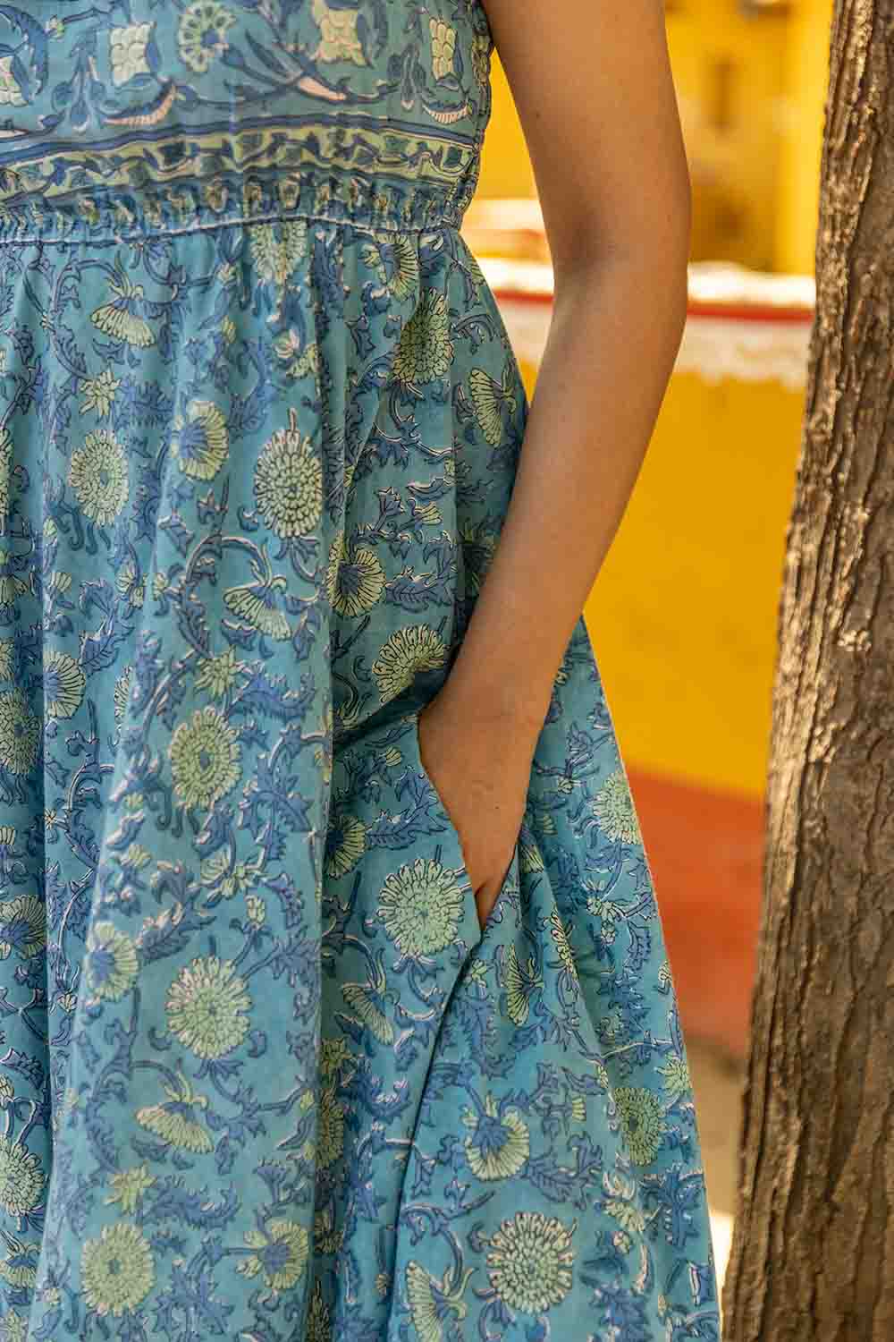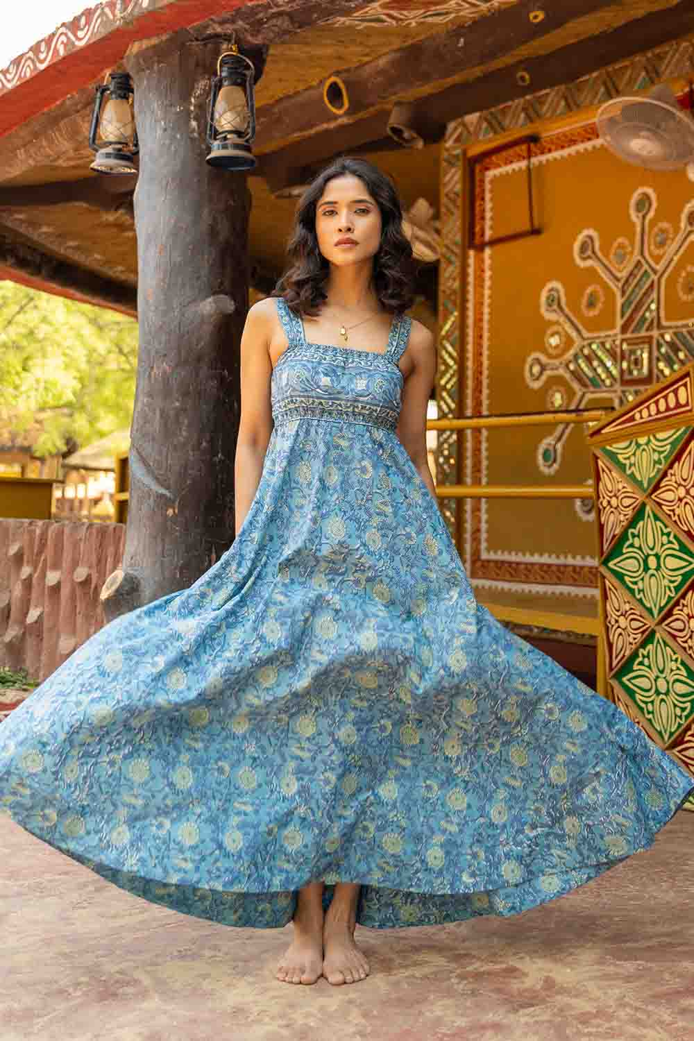 Blue Hand Block Cotton Dress – Full Flair & Timeless Craft