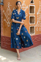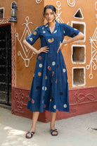 Indigo Polka Dot A-Line Dress In Bagru Print – Organic & Ethically Made