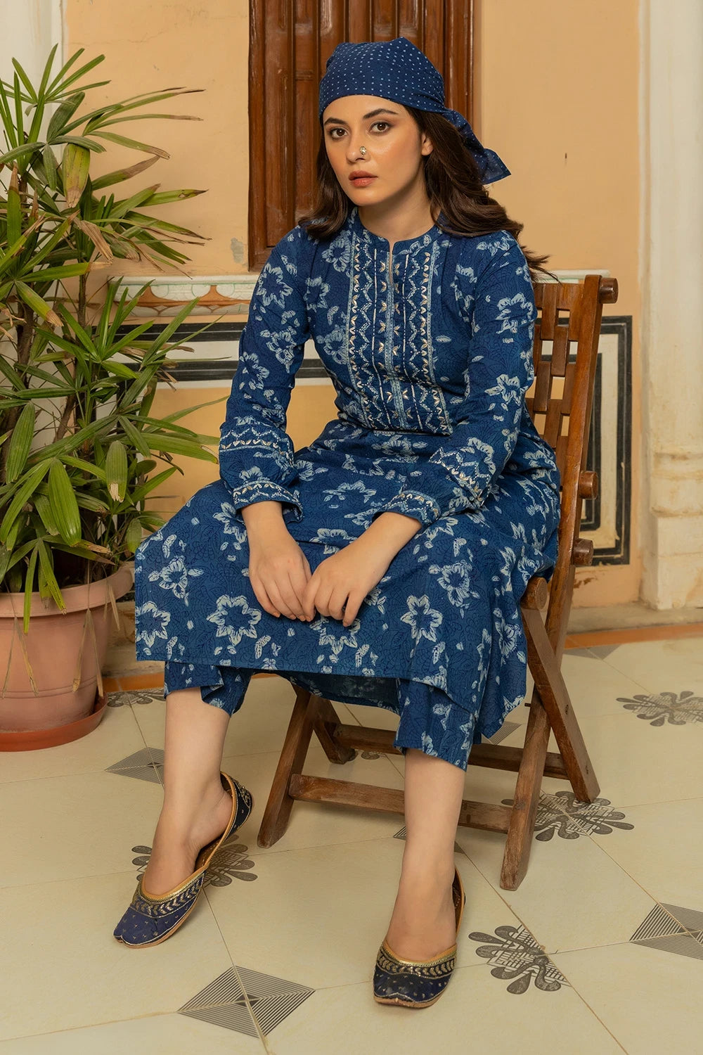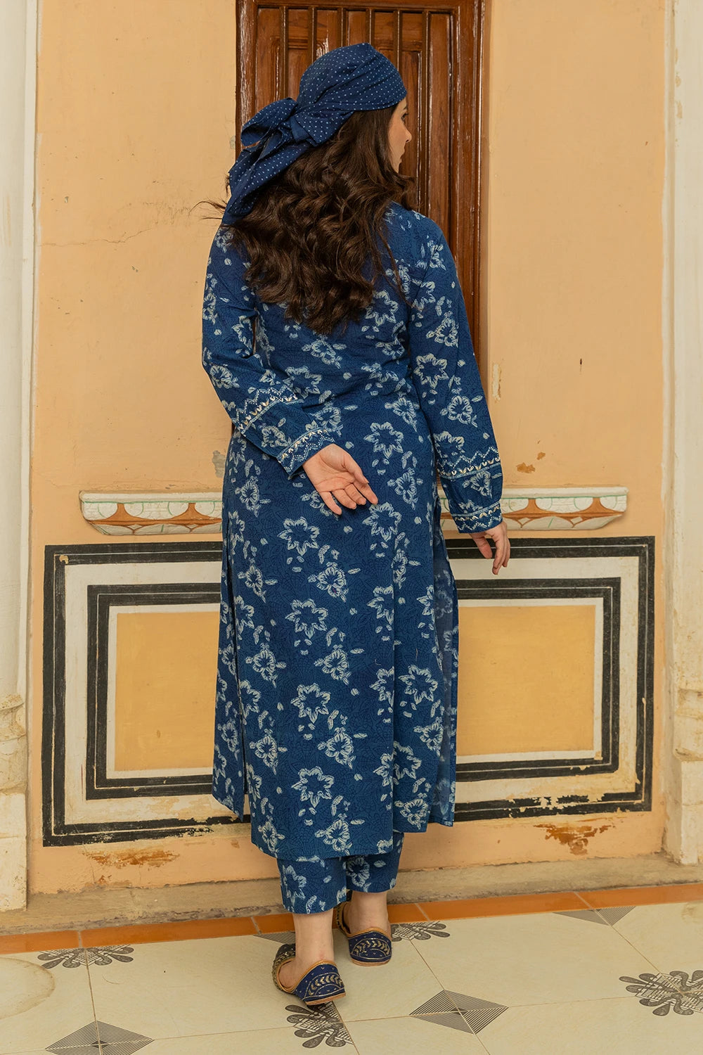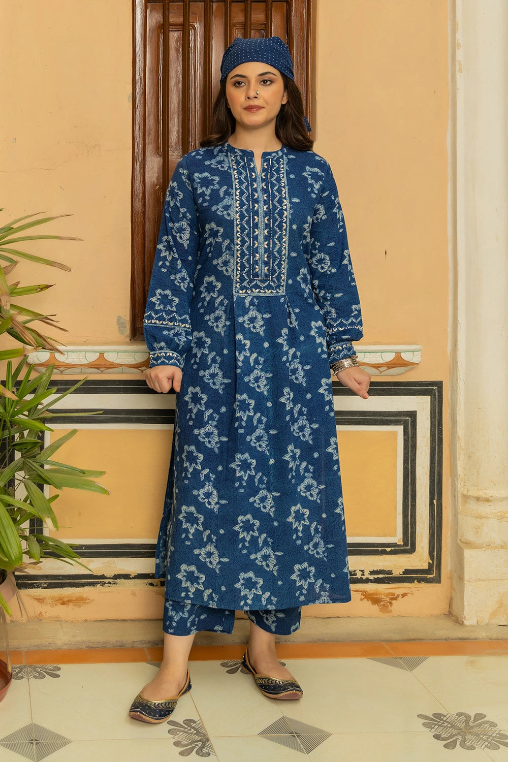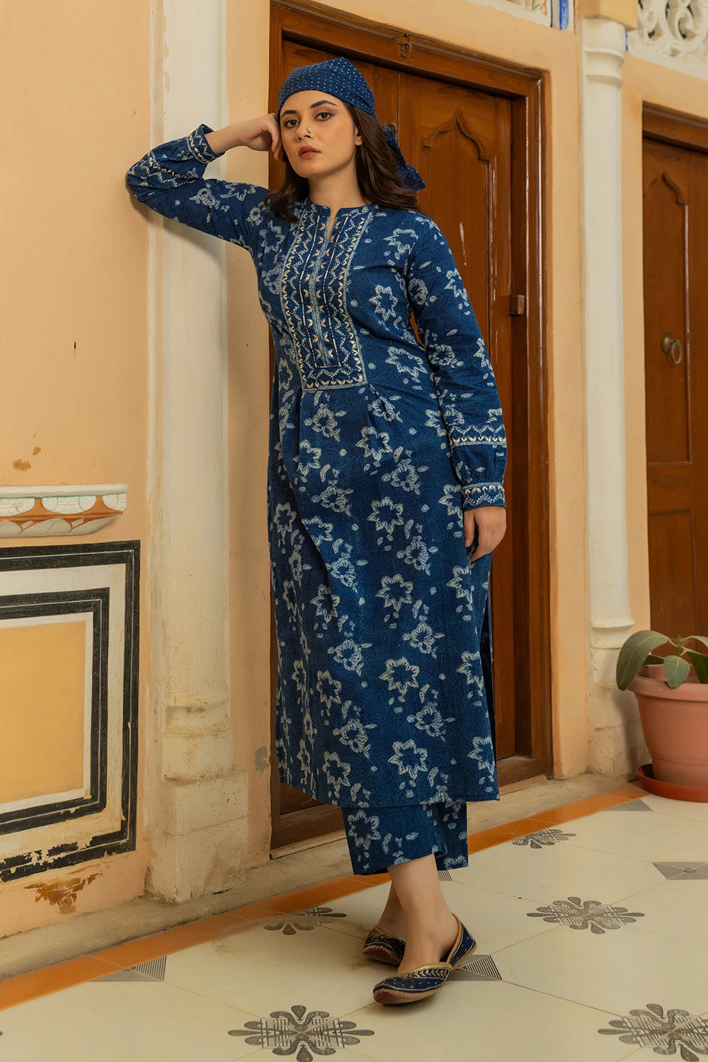 Mandarian Collar Blue Art Cord Set - Set Of 2