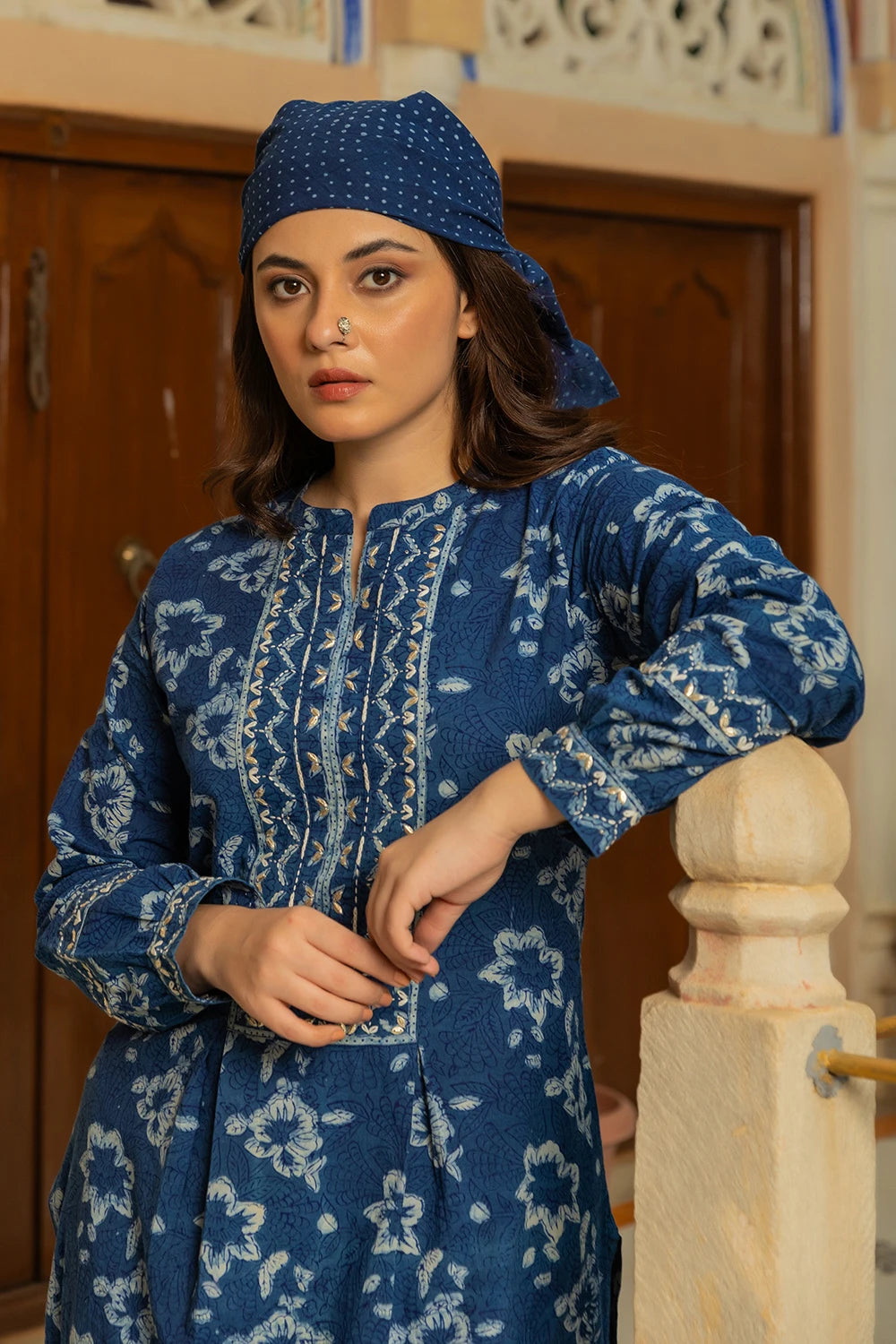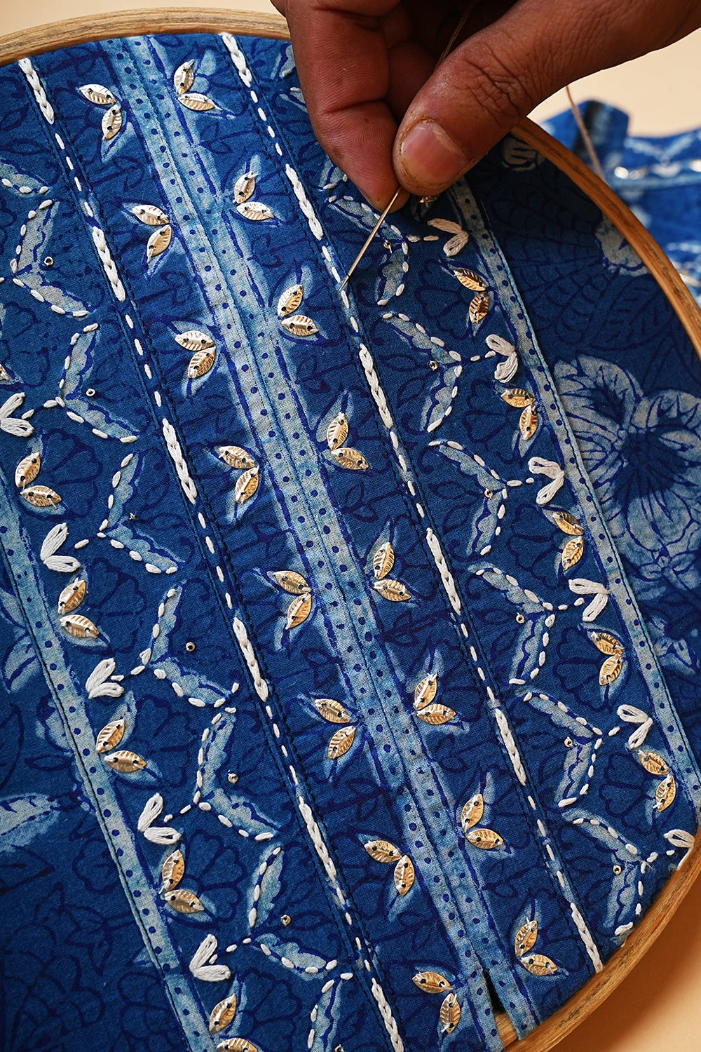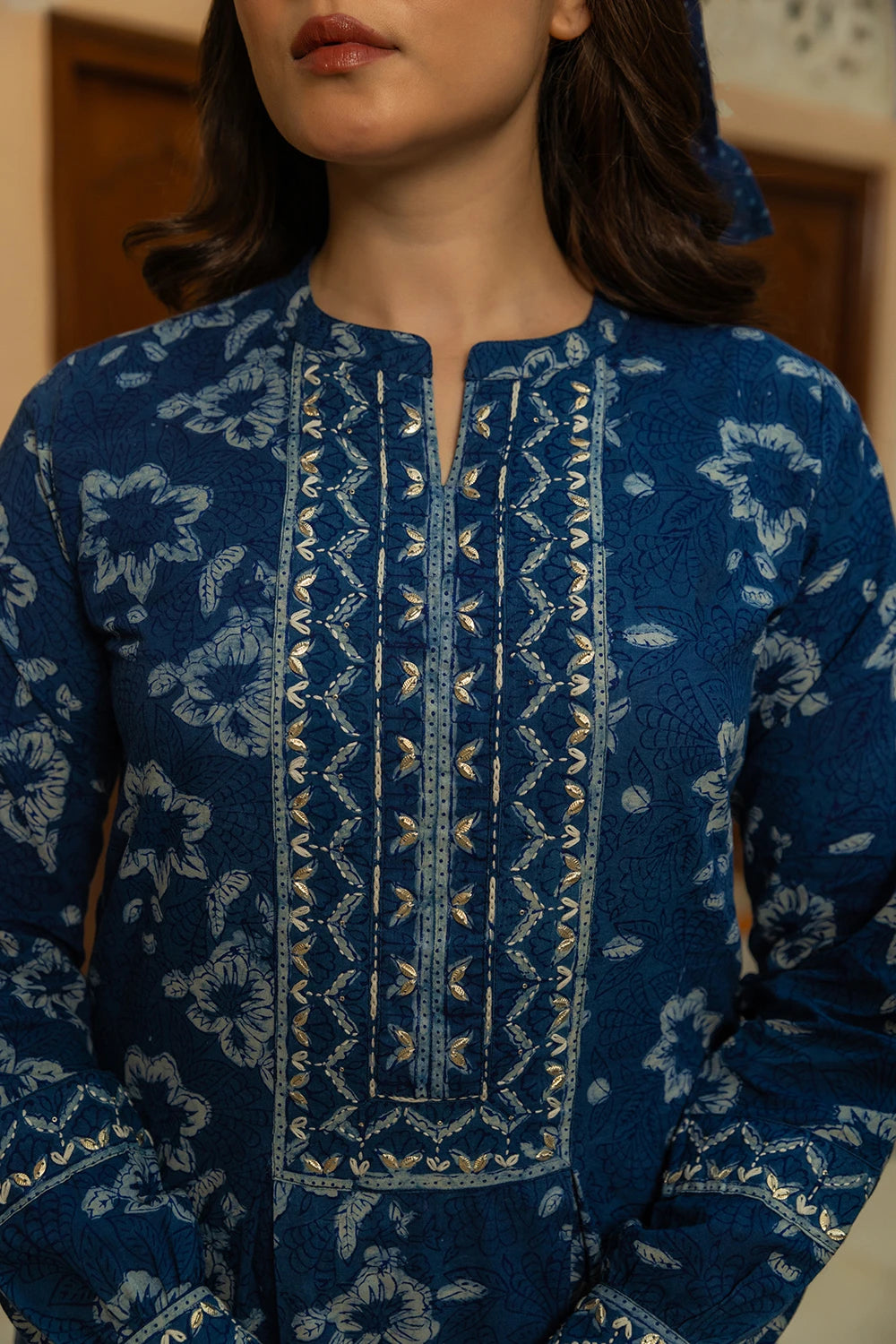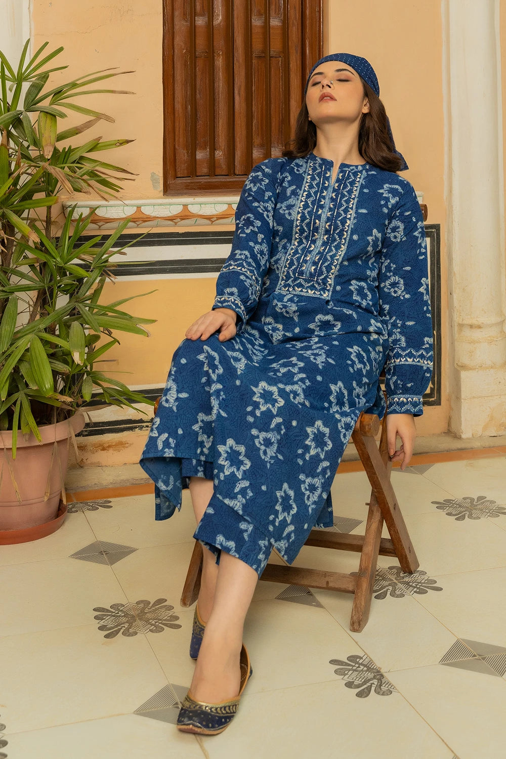 Mandarian Collar Blue Art Cord Set - Set Of 2