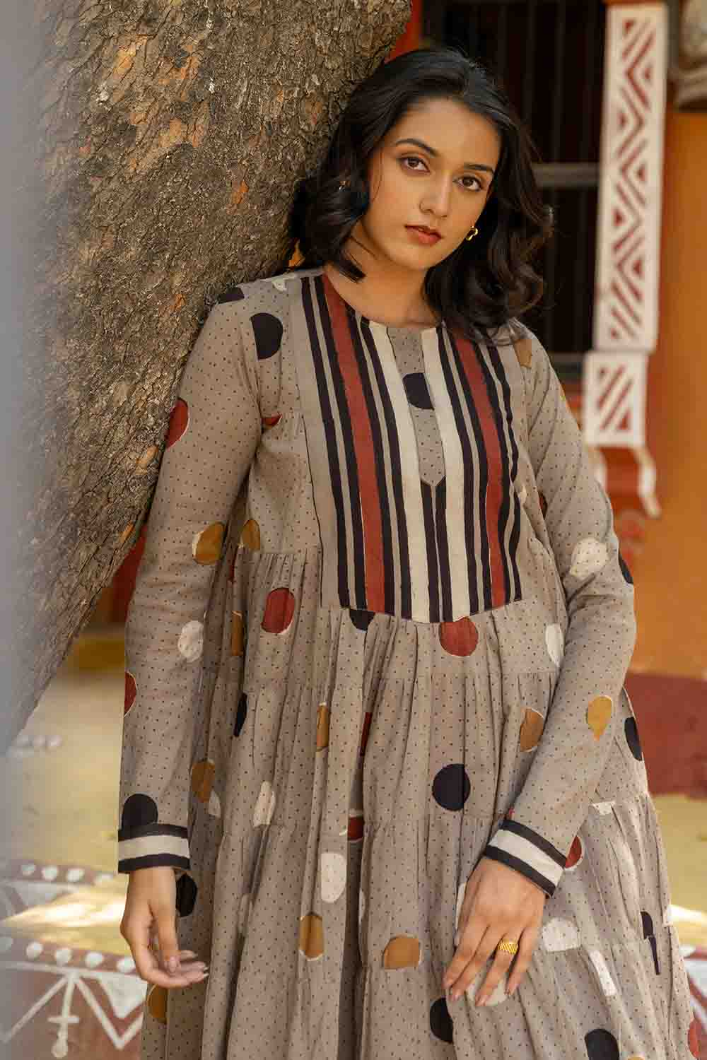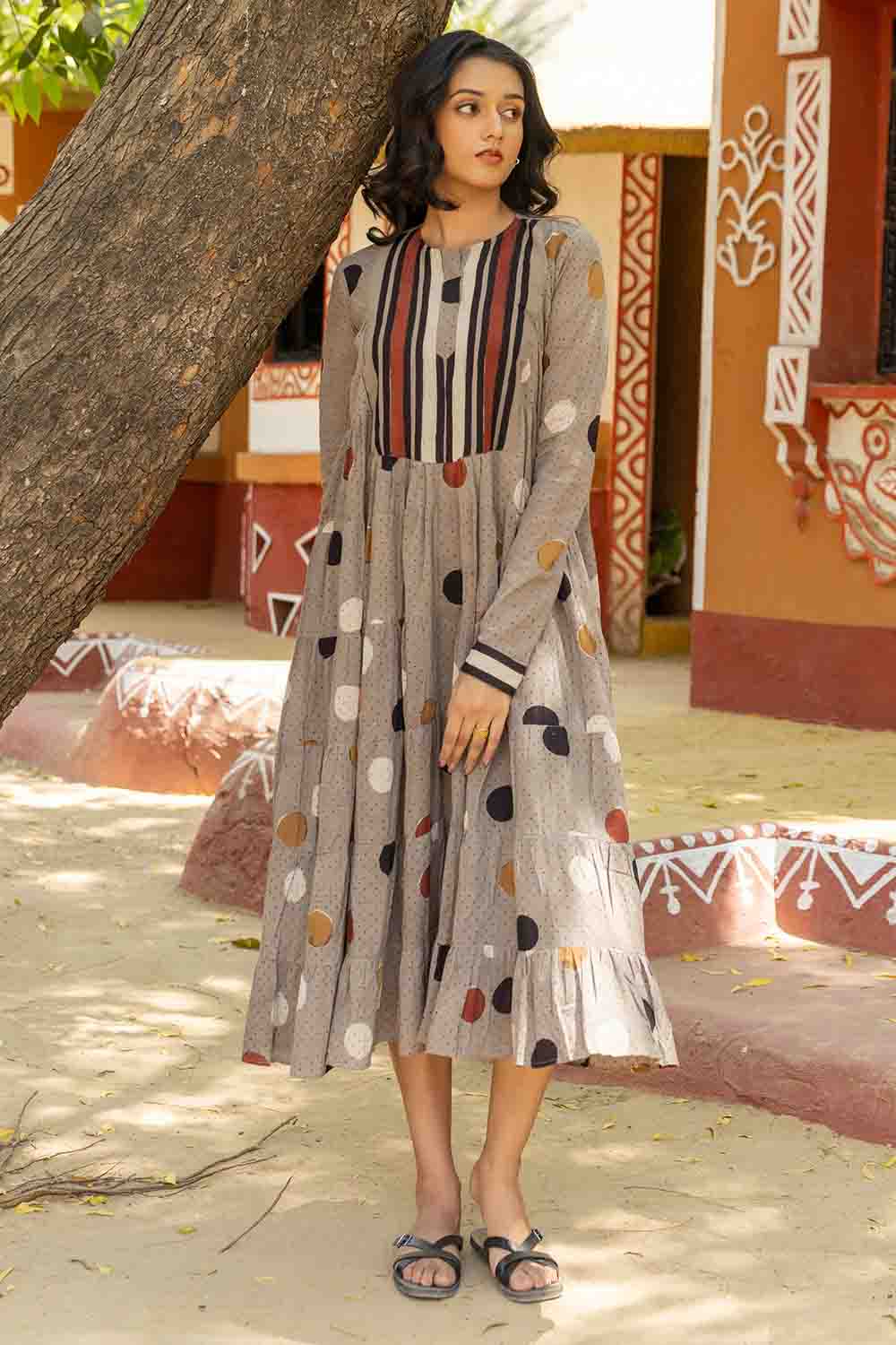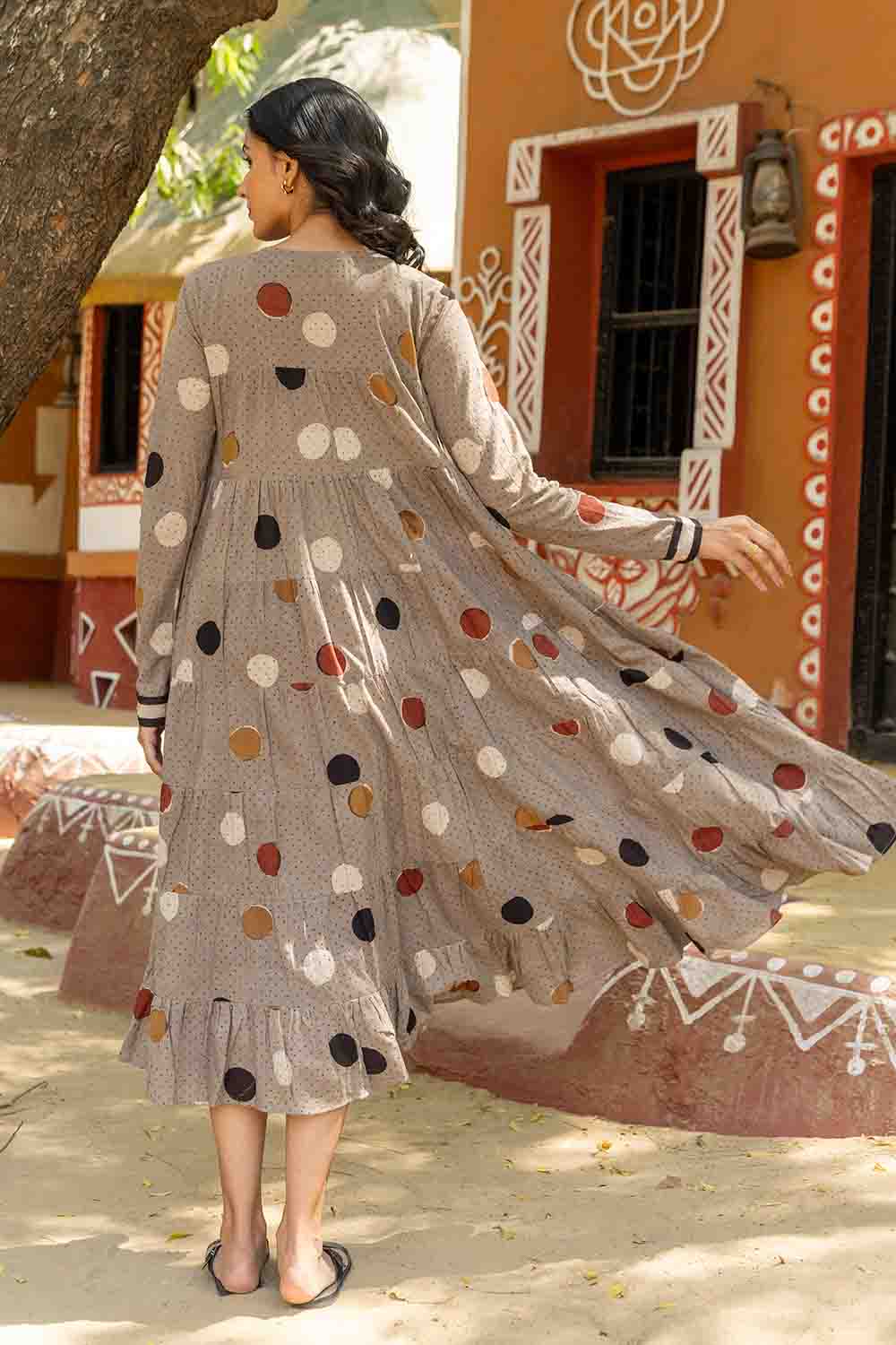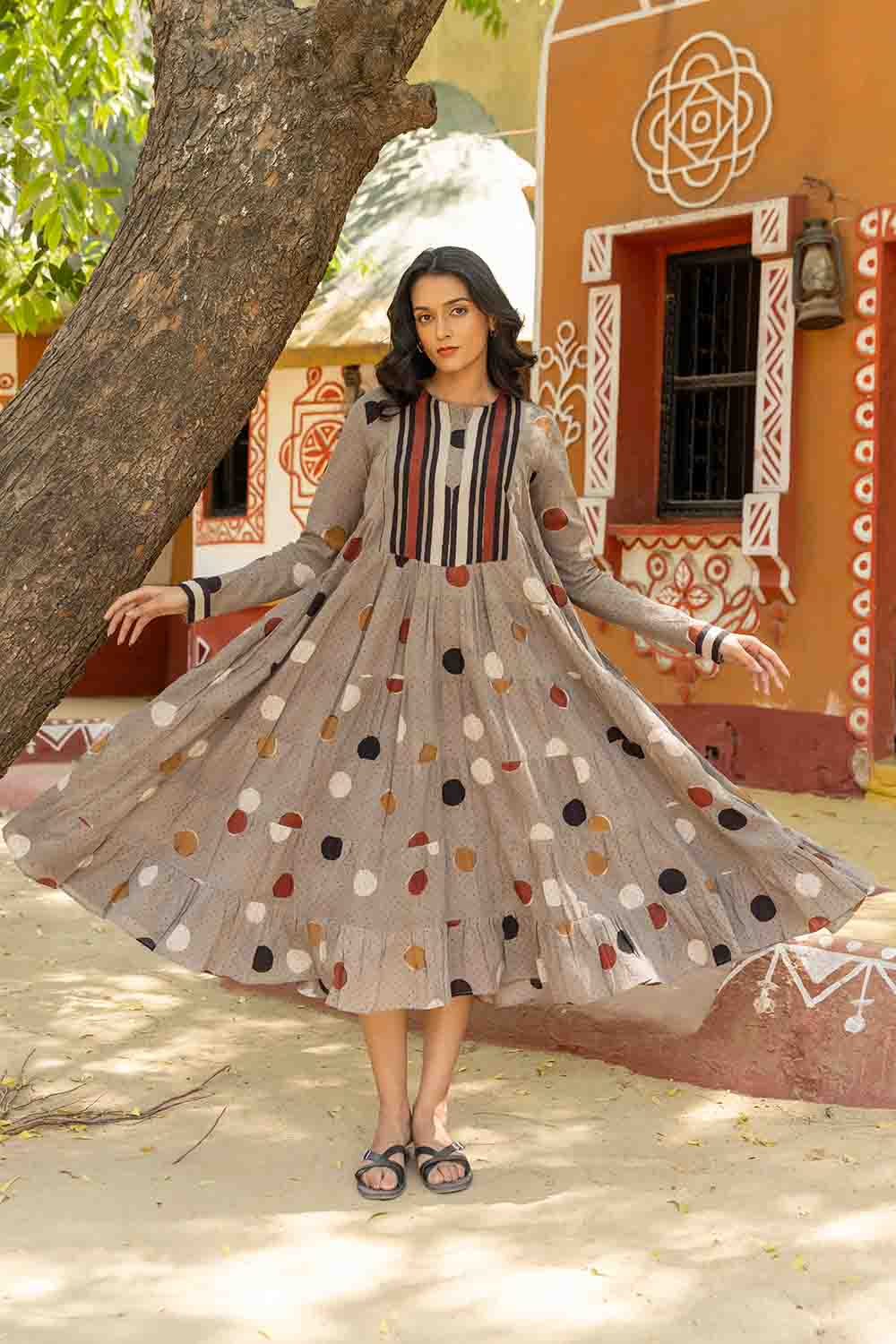 Natural Dyed Beige Polka Dot Tiered Dress – Bagru Handcrafted Cotton