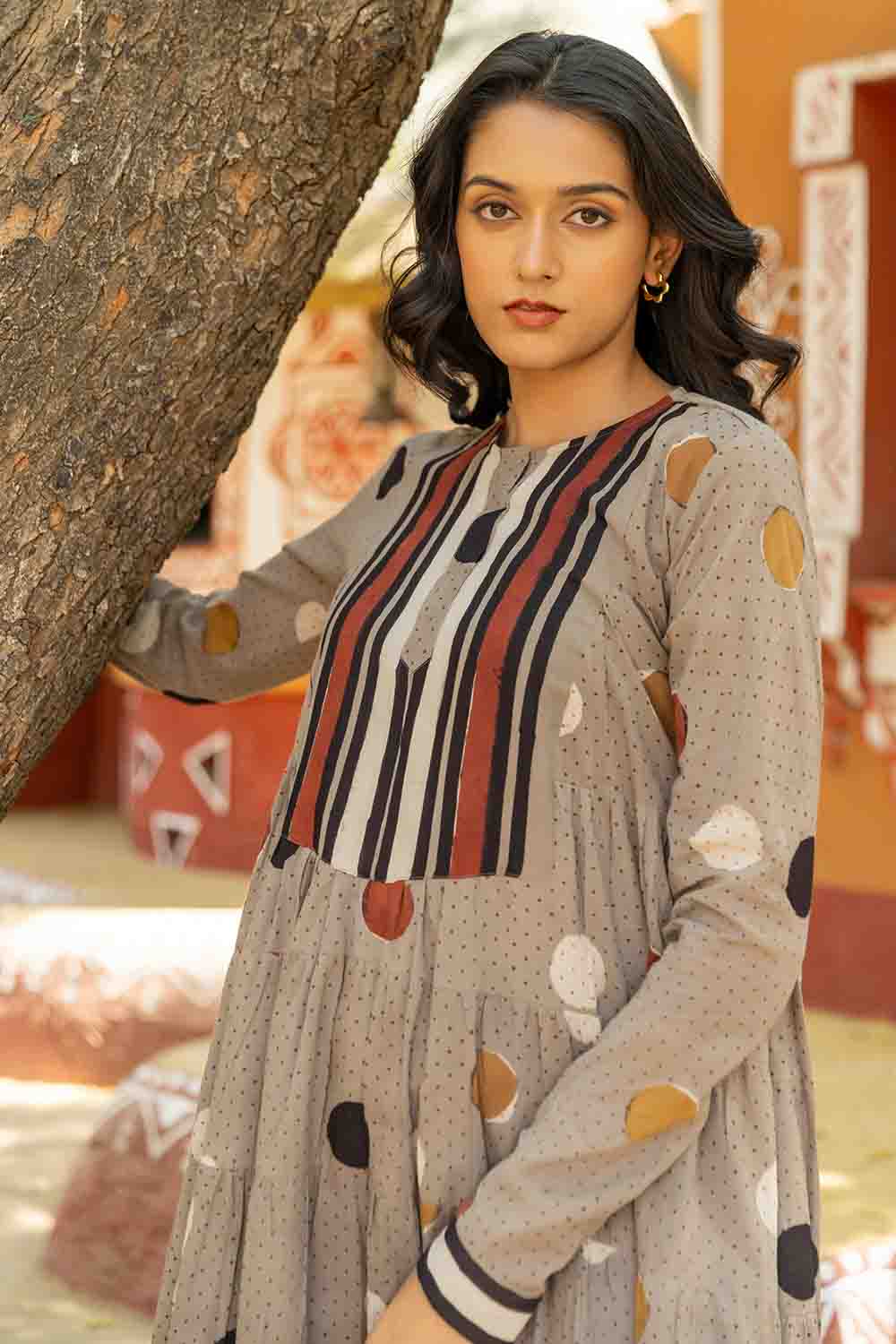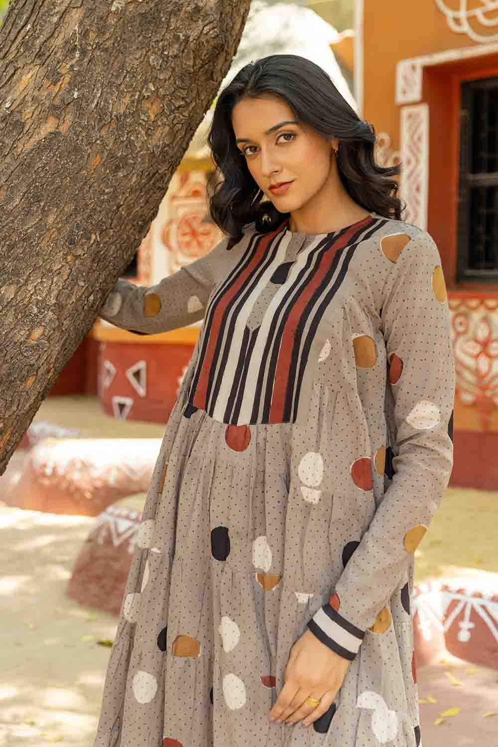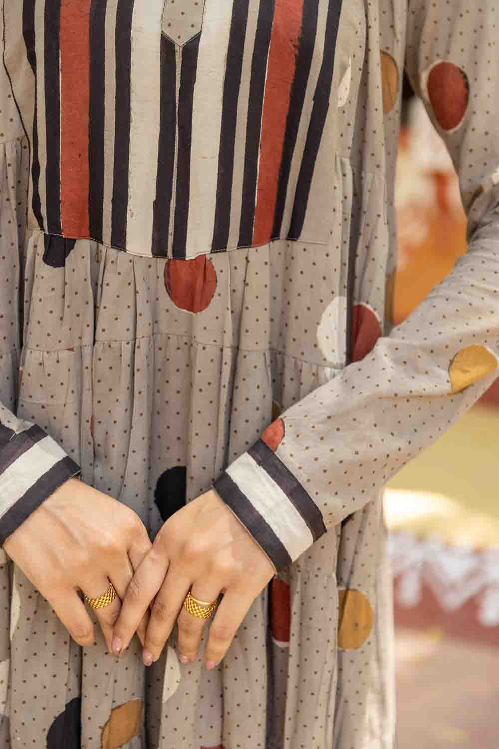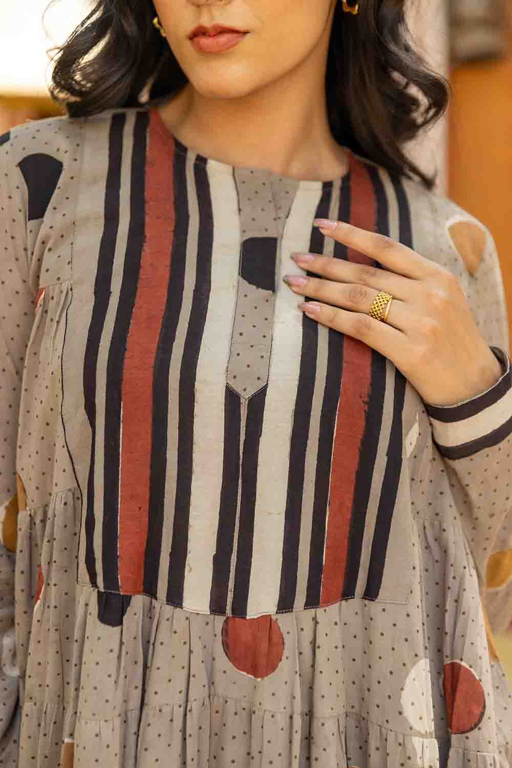 Natural Dyed Beige Polka Dot Tiered Dress – Bagru Handcrafted Cotton