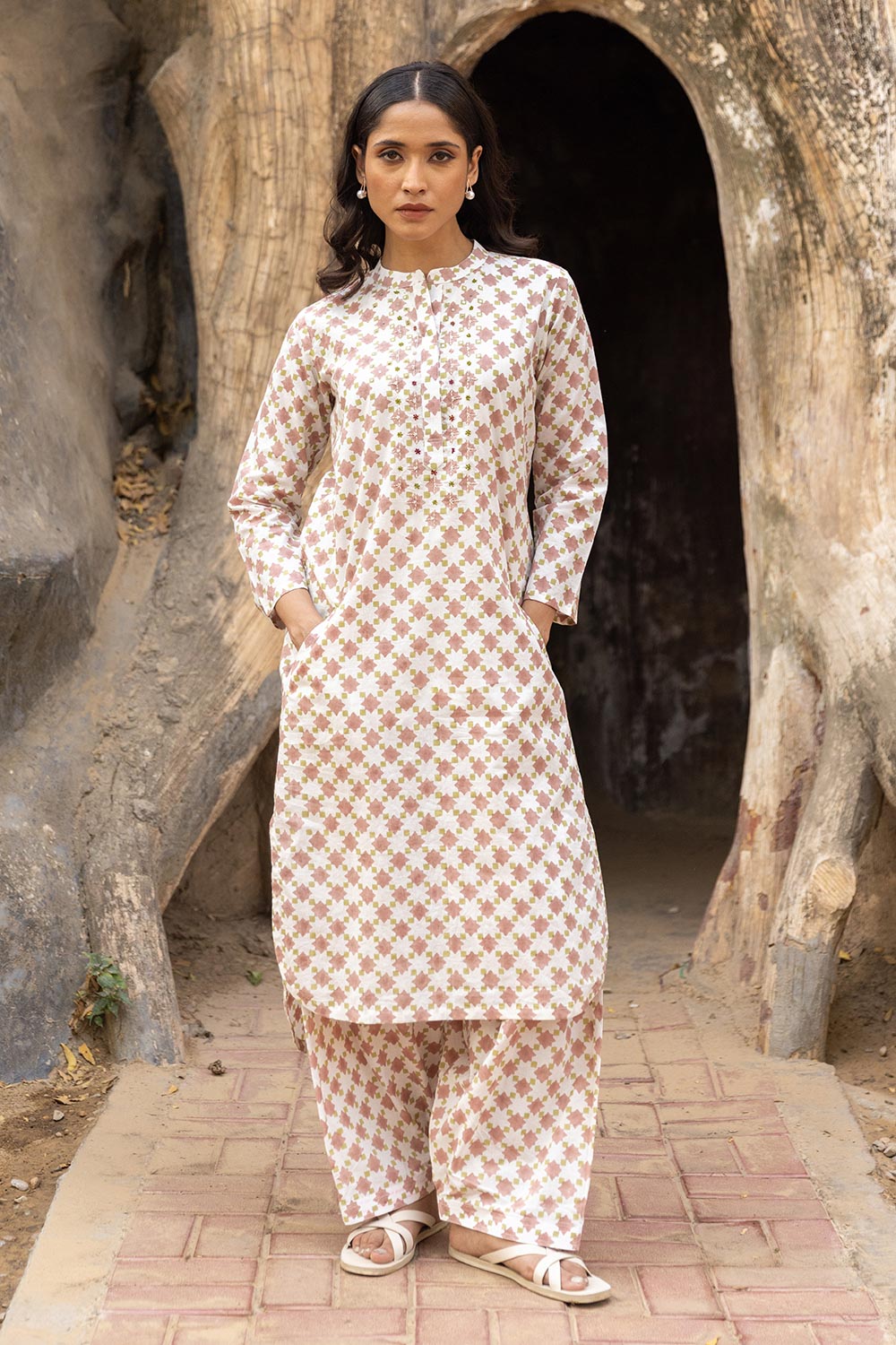 patterns, this coord set is crafted from pure, breathable fabric that feels light on the skin. The easy, relaxed fit ensures all-day comfort, making it your ideal pick for work-from-