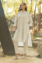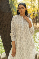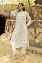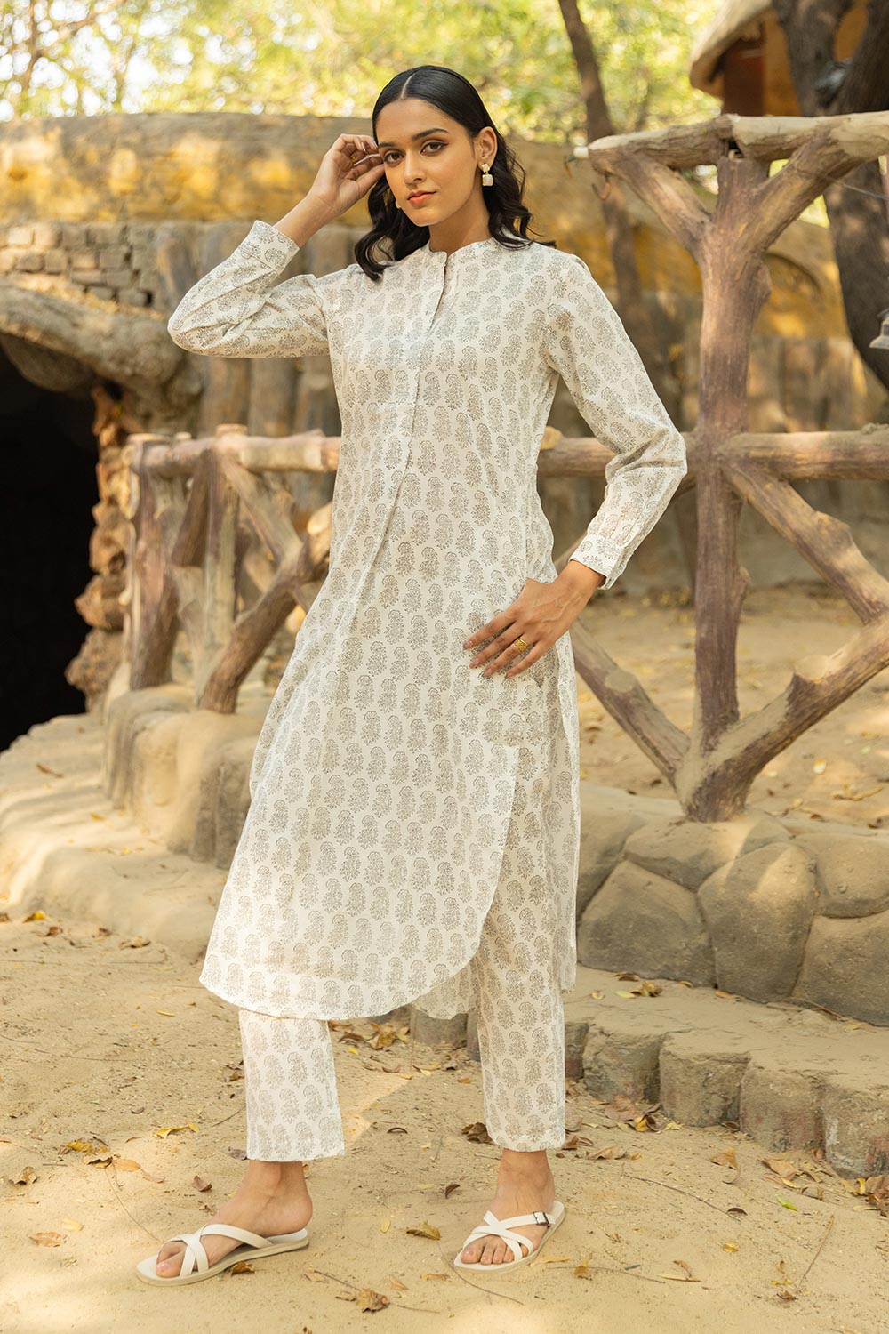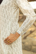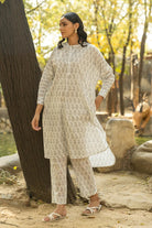 Women’s comfort Fit white Co-ord Set – Natural Print | Sustainable Cotton Wear